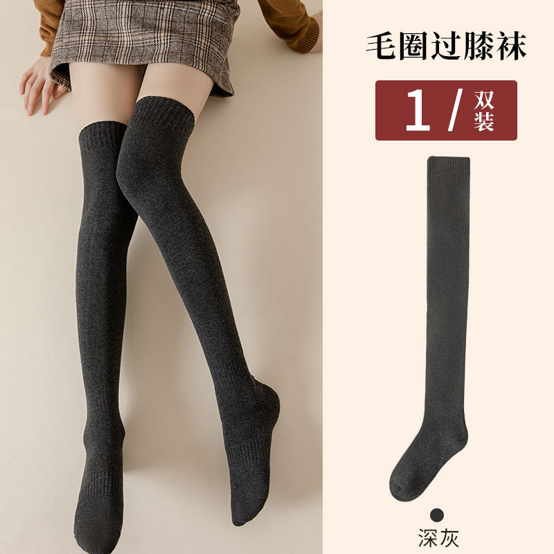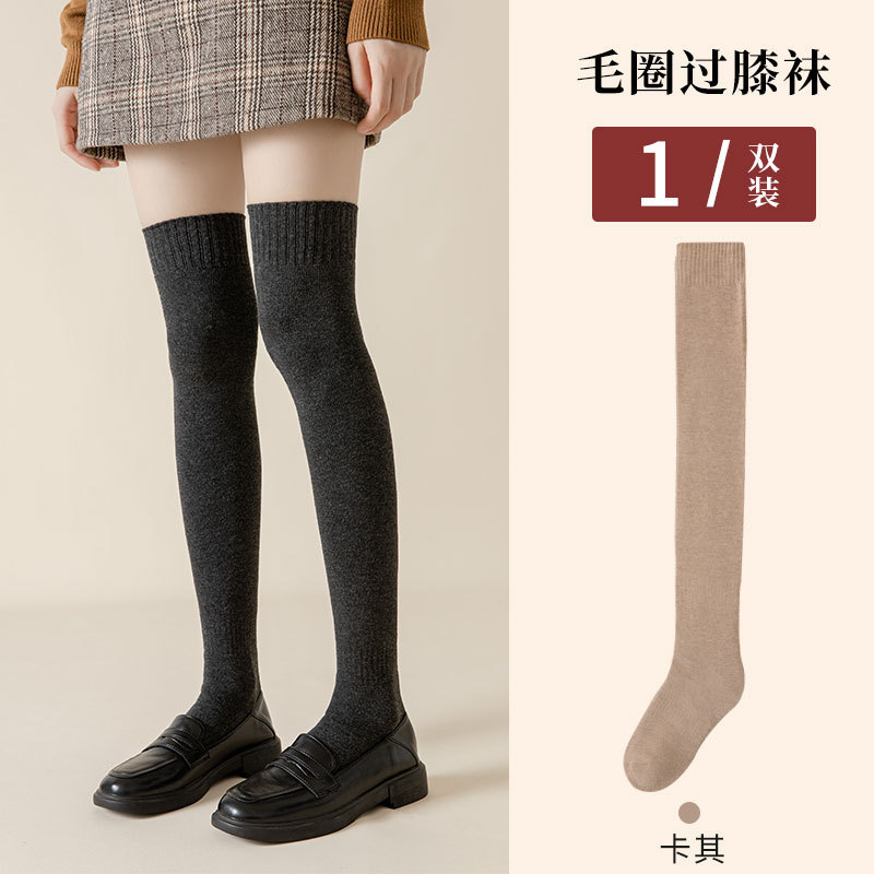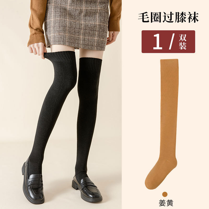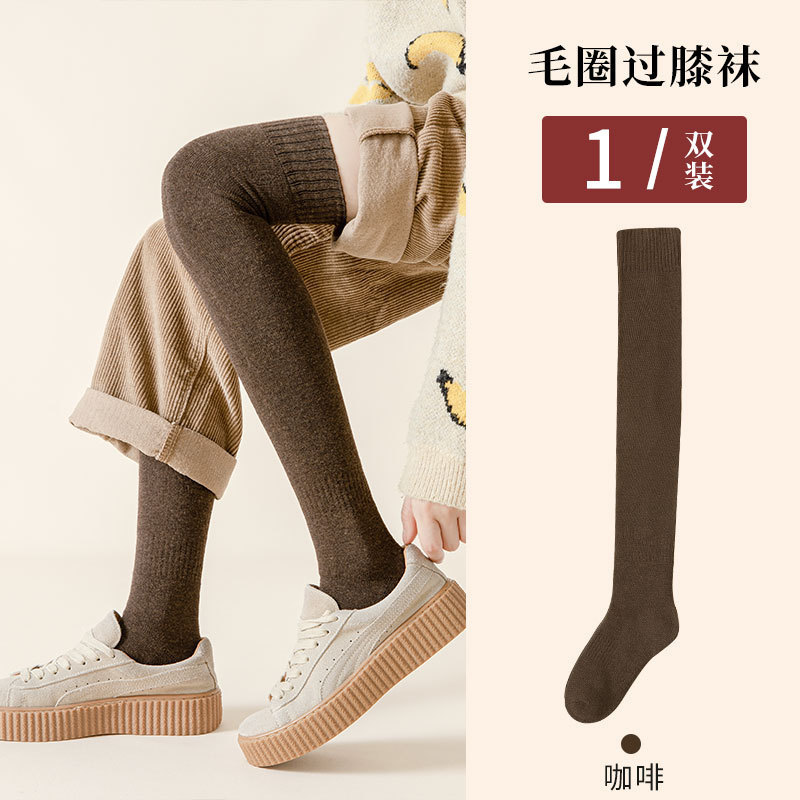 무릎 위 양말 어린이 겨울 두꺼운 테리 양말 긴 튜브 jk 종아리 양말 단색면 가을과 겨울 따뜻한 무릎 양말스토어 가기