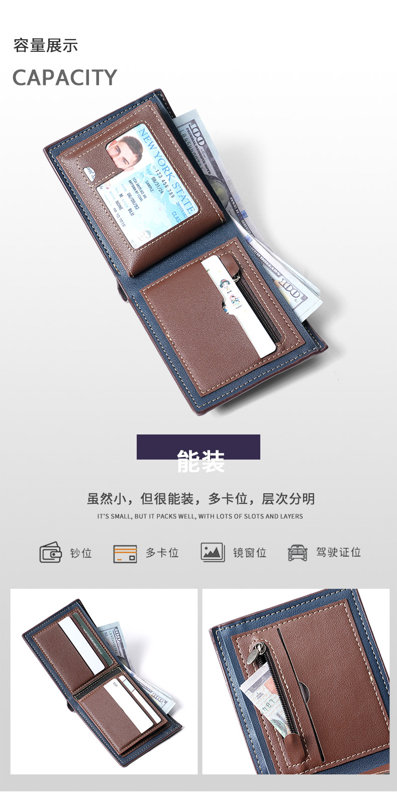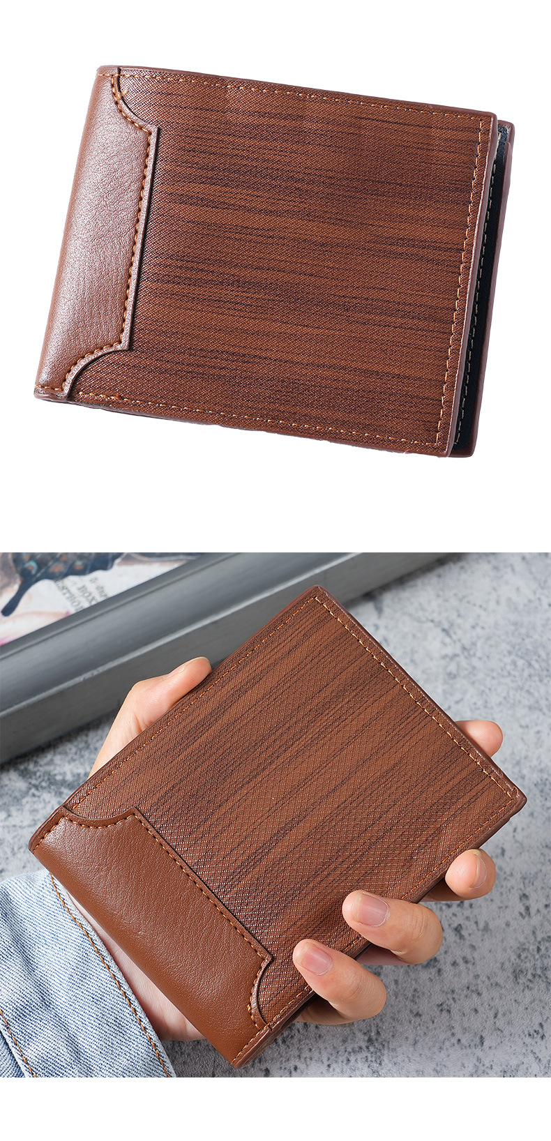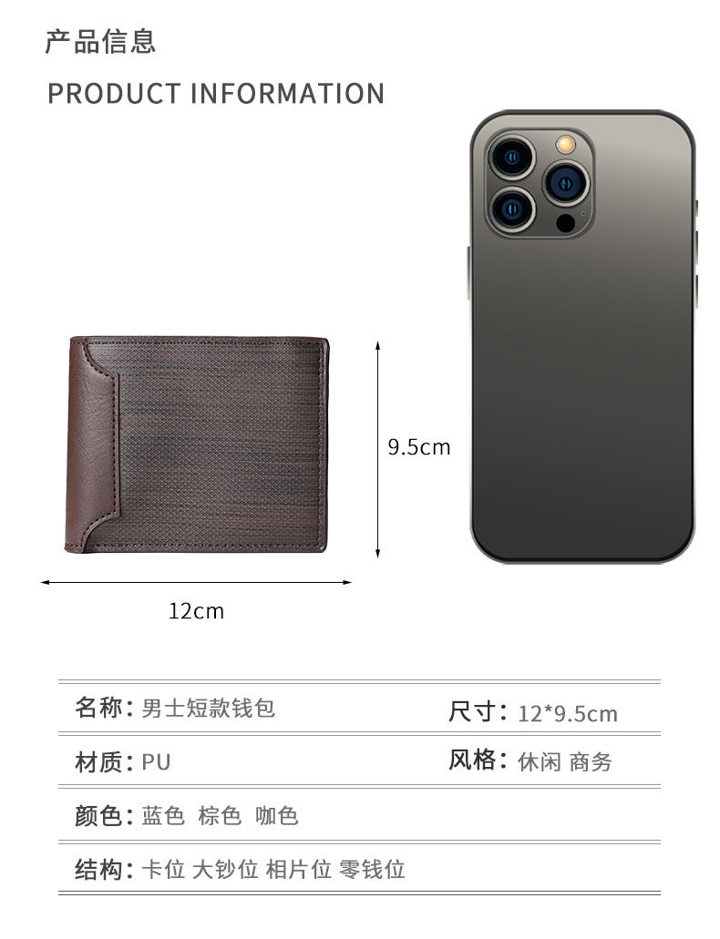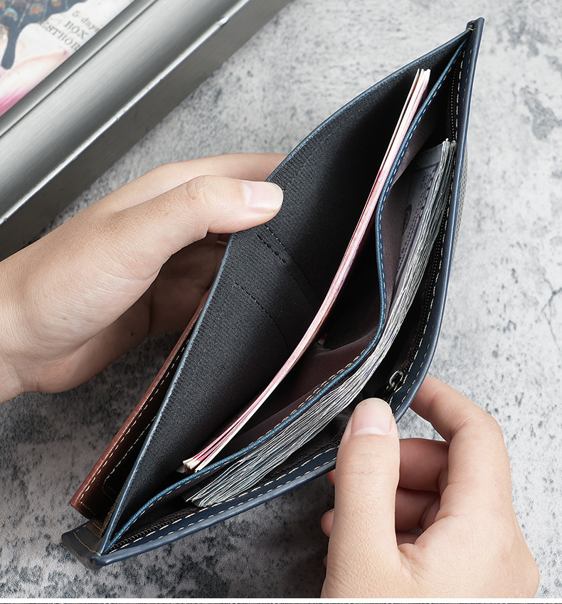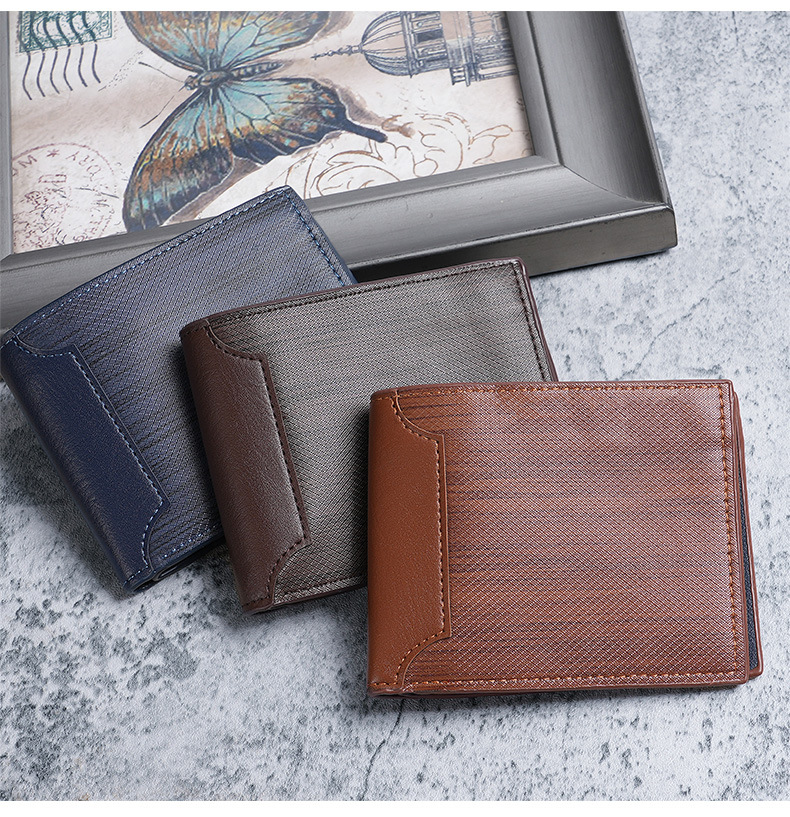 국경 간 대외 무역 남성용 짧은 지갑 어린 학생들을위한 패션 멀티 카드 회전 벨트 지퍼 지갑