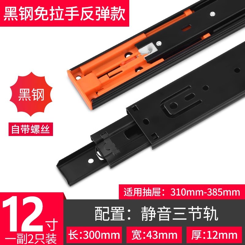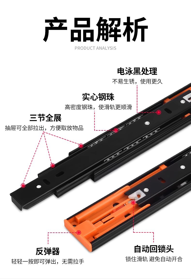 서랍 트랙 블랙 두꺼운 음소거 리바운드 캐비닛 레일 프레스 타입 자동 프레스 스프링 3 서랍 슬라이드
