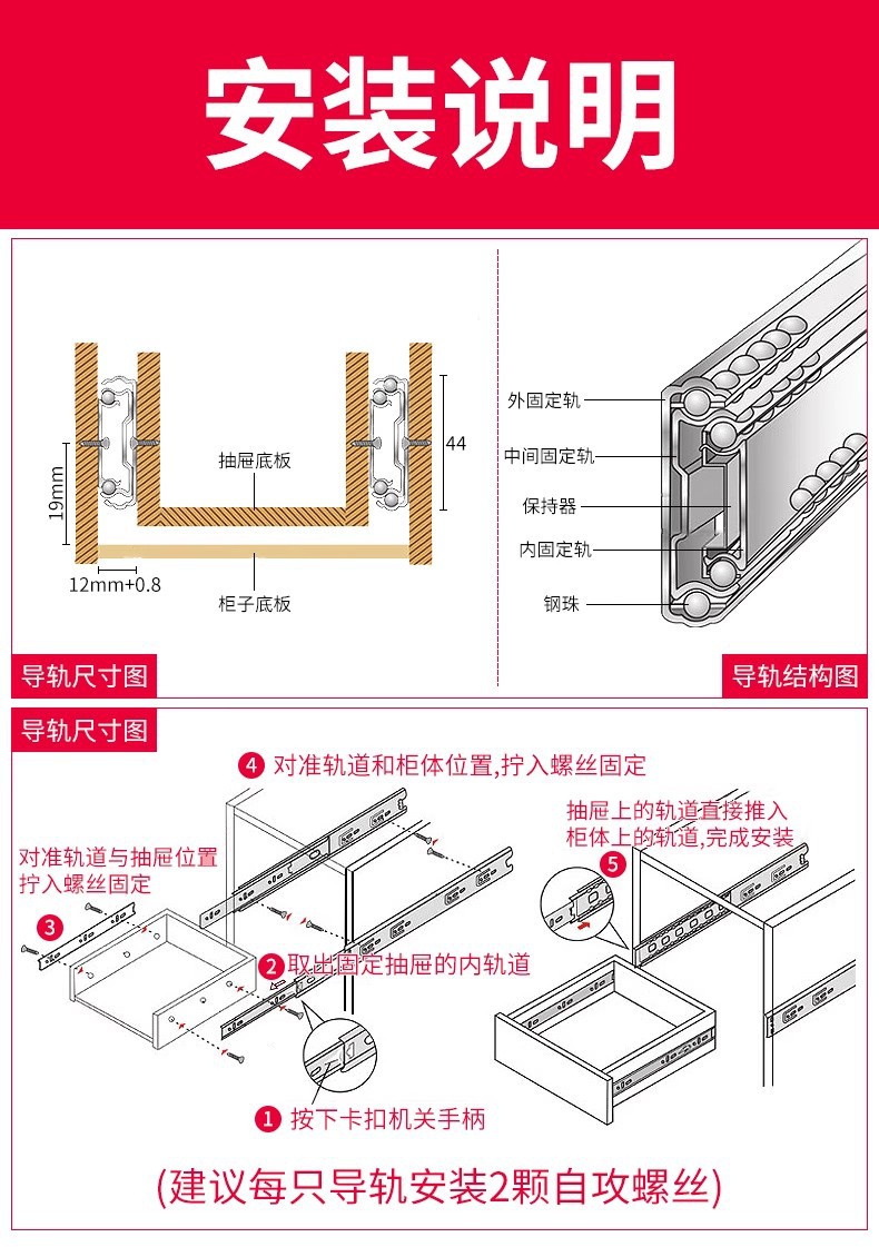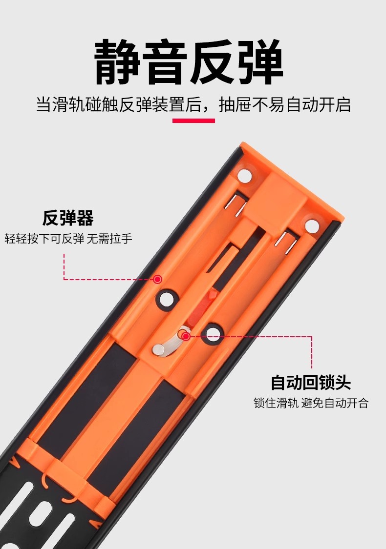 서랍 트랙 블랙 두꺼운 음소거 리바운드 캐비닛 레일 프레스 타입 자동 프레스 스프링 3 서랍 슬라이드스토어 가기