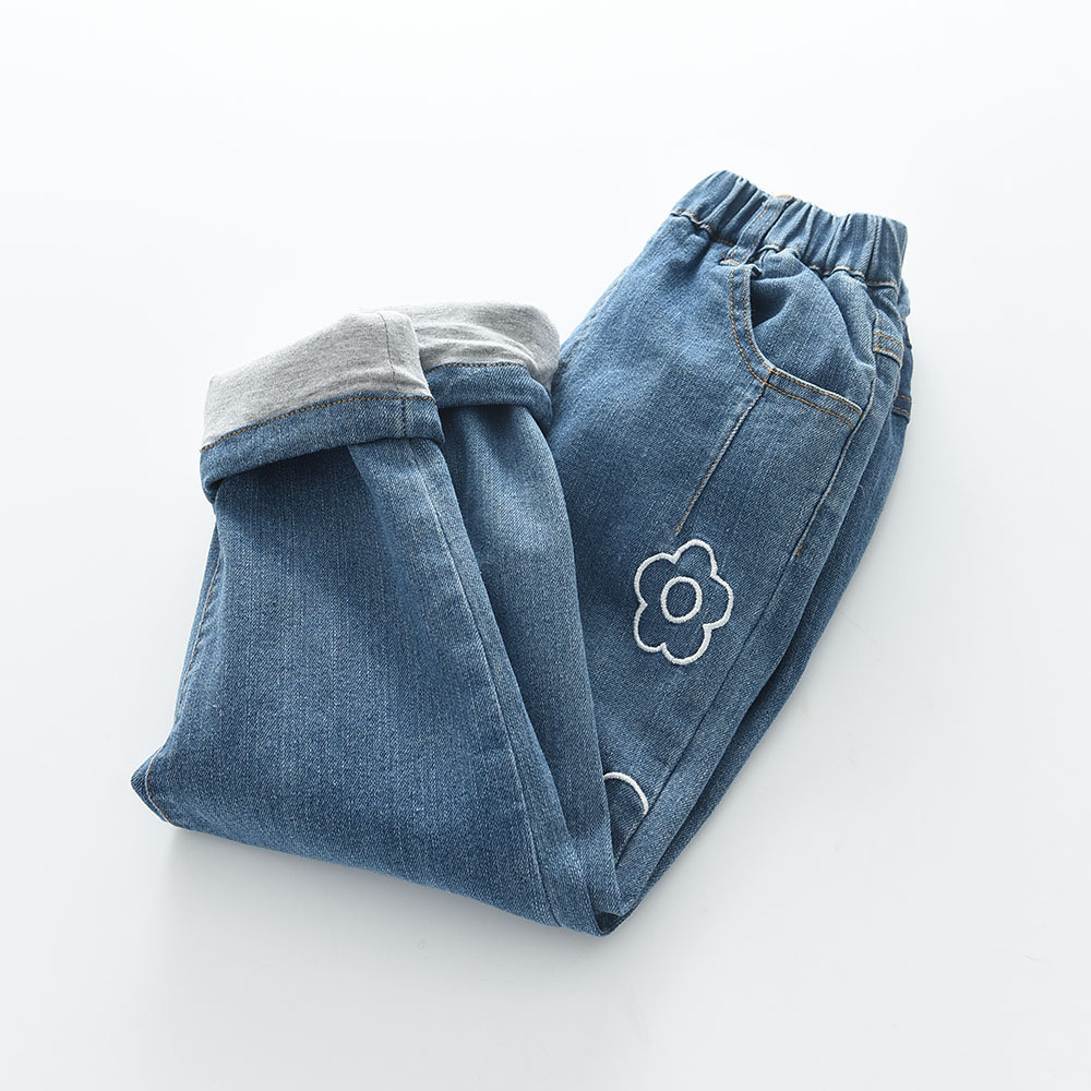 2023秋冬新款 花朵绣花 女童纯棉里布牛仔夹裤