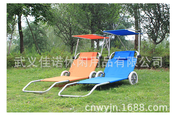 야외 제조 업체 도매 바퀴 달린 비치 의자 차양 다기능 라운지 의자 싱글 접이식 비치 침대 레저 의자