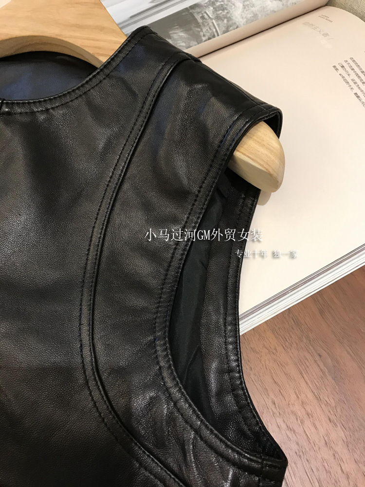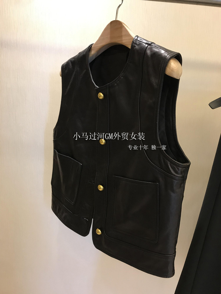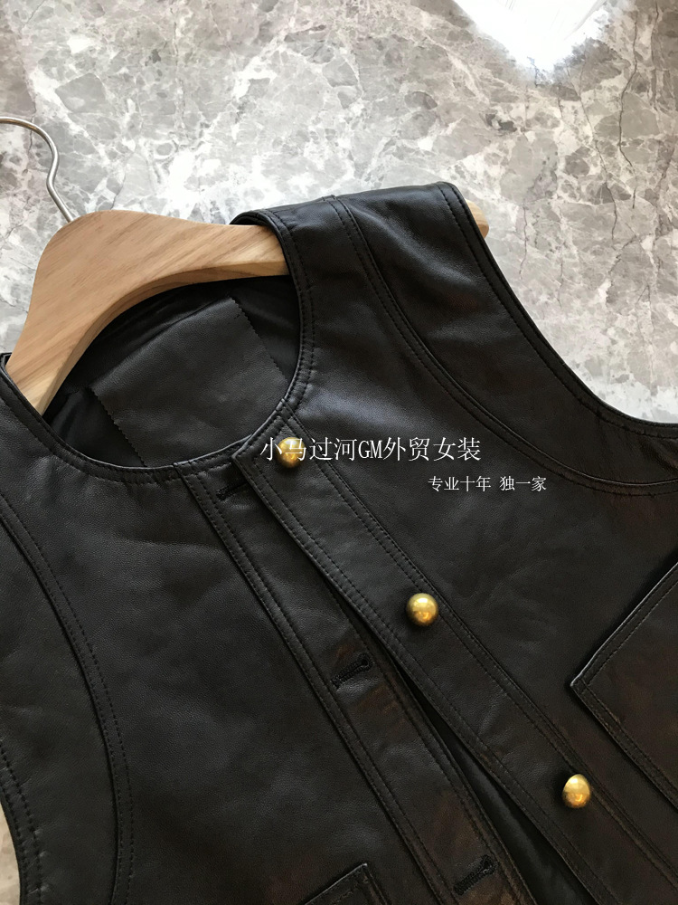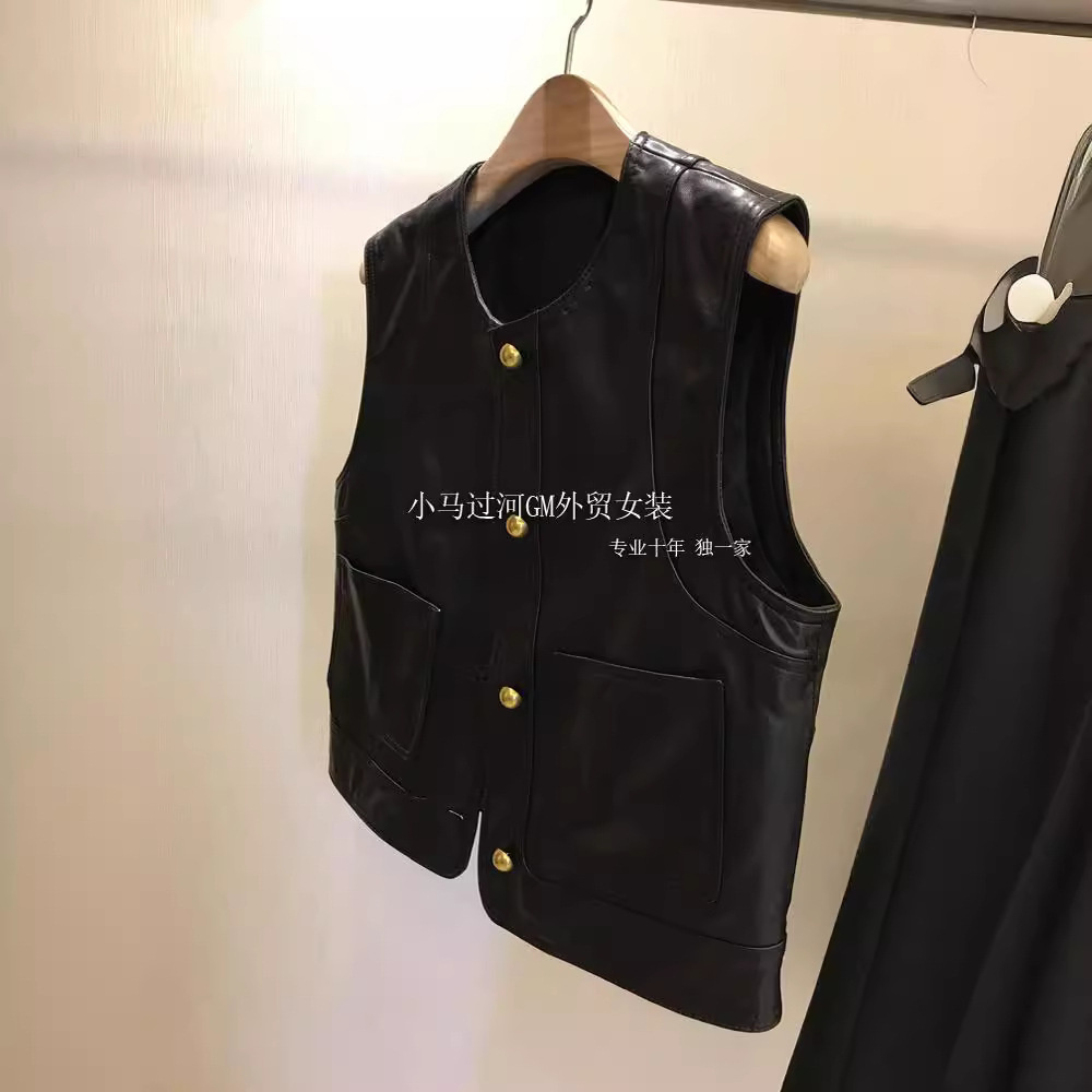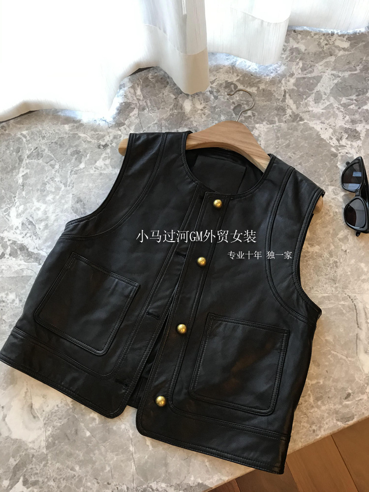 재고 없음, 강한 푸시!! 여성용 하이 럭셔리 정품 가죽 양가죽 느슨한 라운드 넥 싱글 브레스트 민소매 조끼스토어 가기