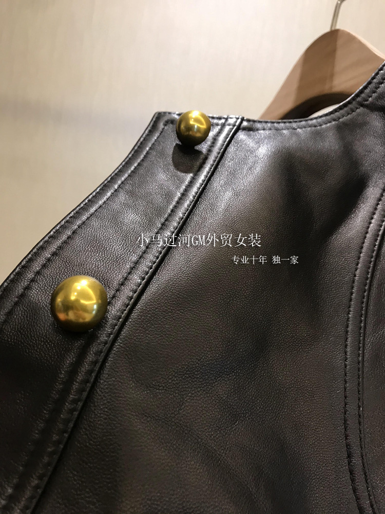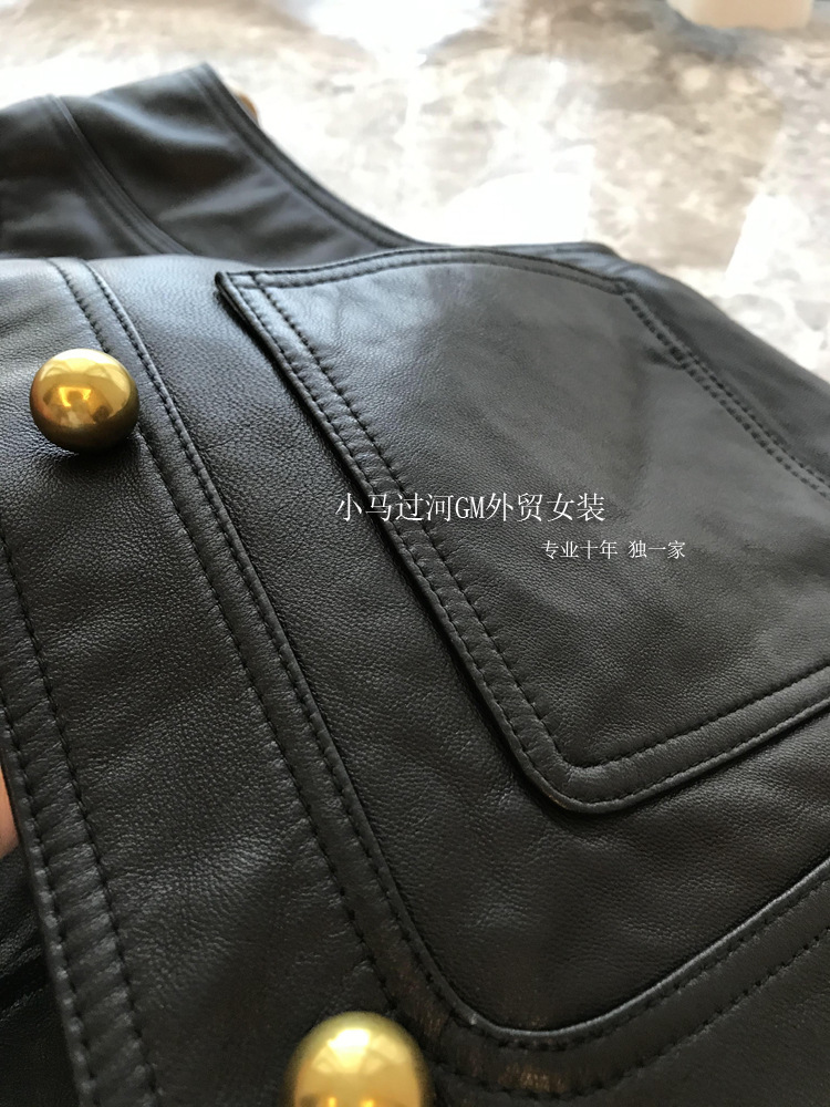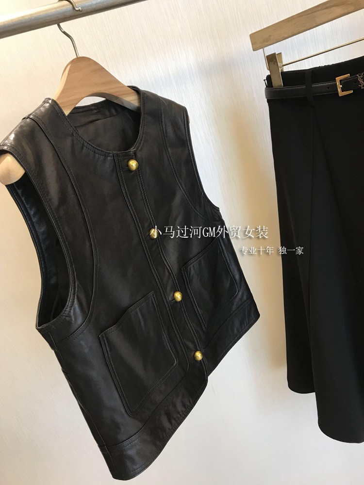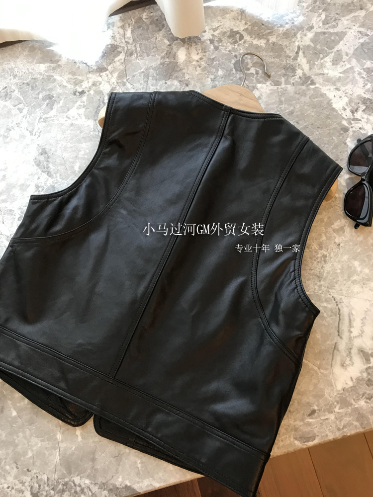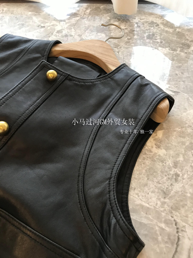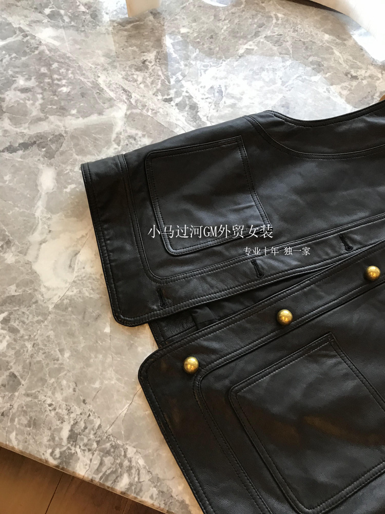 재고 없음, 강한 푸시!! 여성용 하이 럭셔리 정품 가죽 양가죽 느슨한 라운드 넥 싱글 브레스트 민소매 조끼스토어 가기
