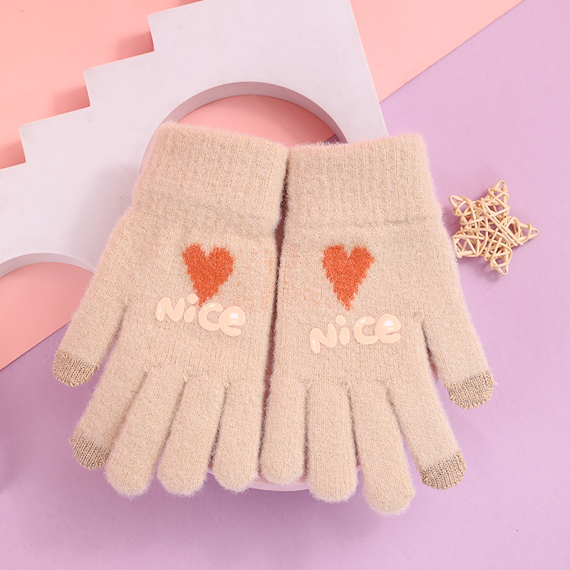 장갑 겨울 여성의 새로운 방풍 따뜻한 귀여운 학생 사이클링 야외 방한 울 터치 스크린 여성용 다섯 손가락 장갑스토어 가기