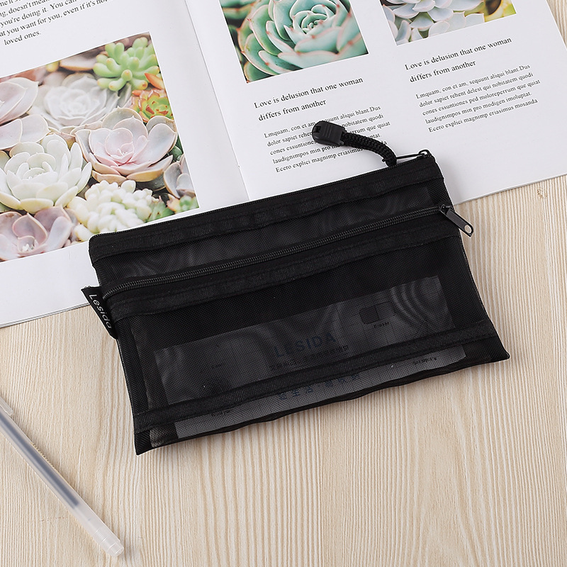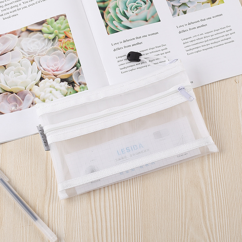 A6 2 중 투명 메쉬 지퍼 파일 가방 나일론 소 · 중 · 고교생 시험지 보관 교과서 시험 펜 가방