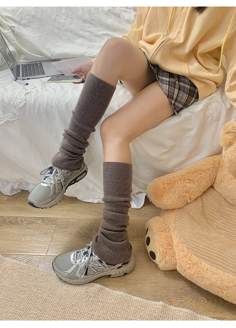 가을과 겨울 따뜻한 말뚝 양말 다리 보호 양말 단색 슬리밍 무릎 길이 스타킹 여성용 심플 올 매치 스트레이트 양말스토어 가기