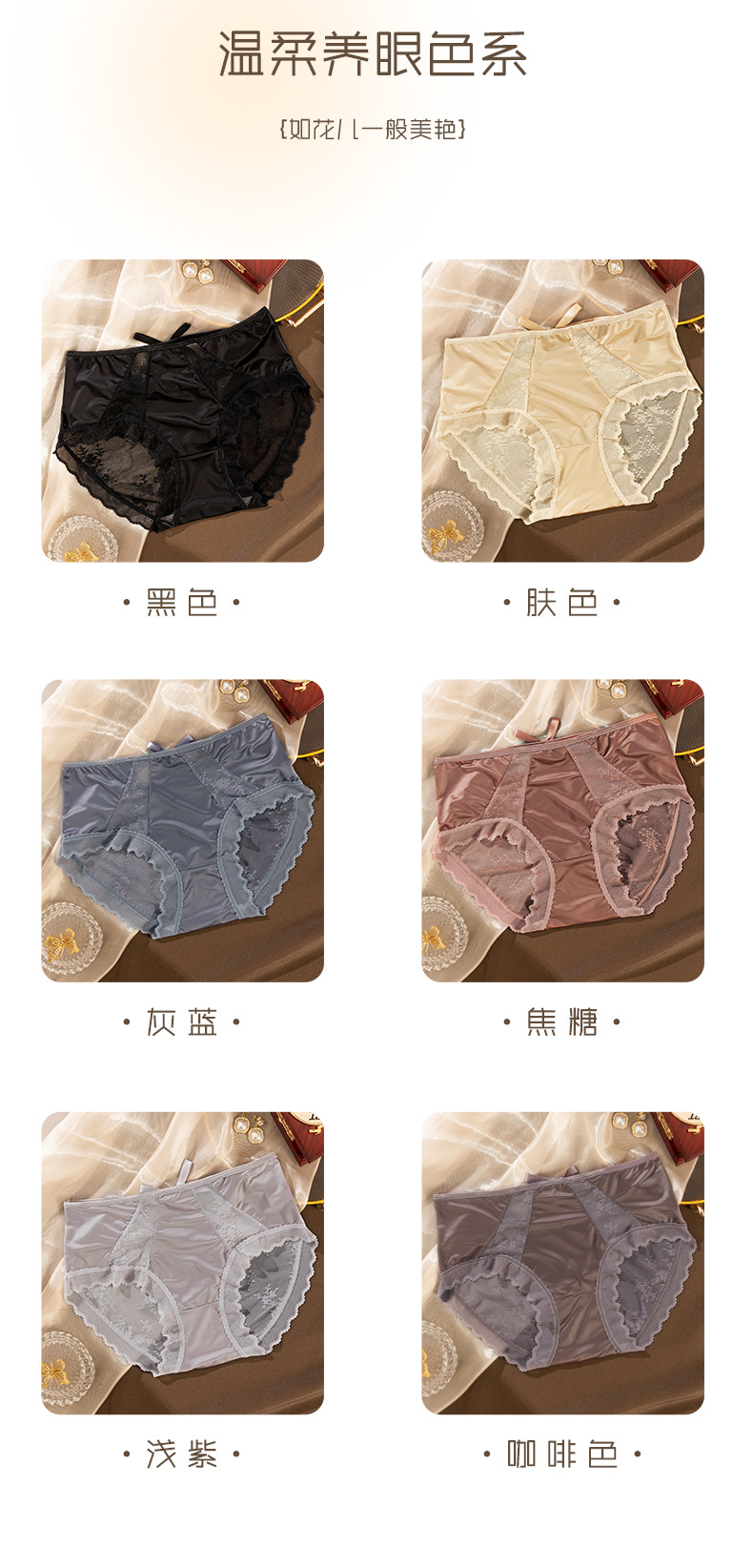 여성용 레이스 속옷 섹시한 활 따뜻한 뽕나무 실크 코튼 중간 허리 원활한 메쉬 여성용 팬티