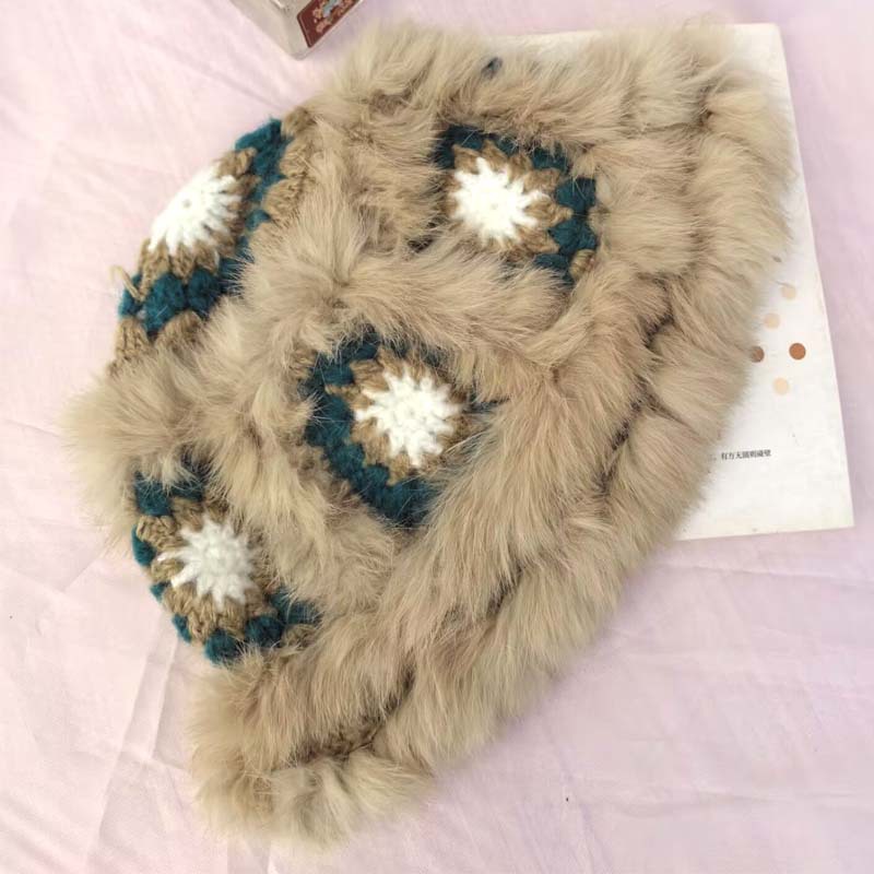 토끼 모피 각성 사자 모자 여성의 가을과 겨울 귀여운 따뜻한 봉제 어부 모자 작은 양동이 모피 분지 모자를 보여주는 모든 경기 얼굴스토어 가기
