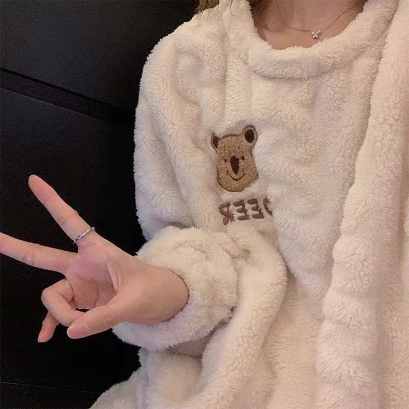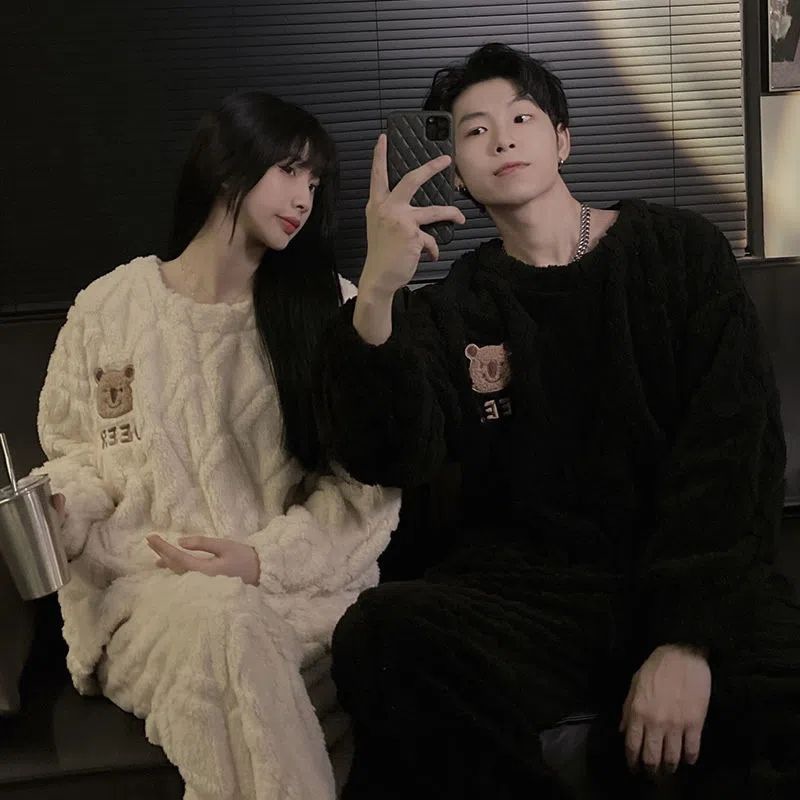 가을 겨울 남성용 코랄 벨벳 풀오버 잠옷 여성용 플러스 벨벳 두꺼운 남녀 공용 라운드넥 홈웨어 고급스러운 느낌스토어 가기