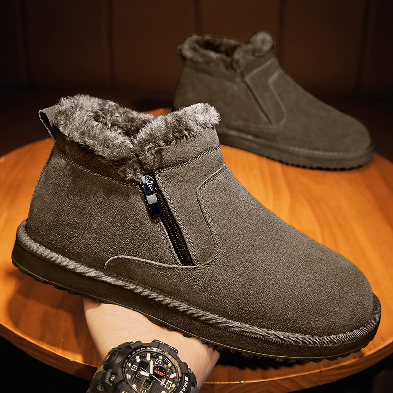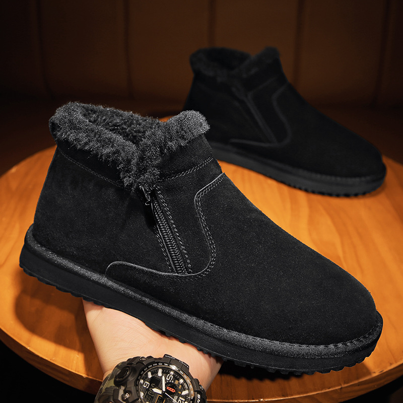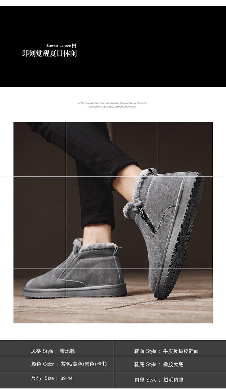 2023 겨울 새로운 패션 남자의 스노우 부츠 소가죽 면 신발 야외 기모 따뜻한 면 부츠 남자스토어 가기