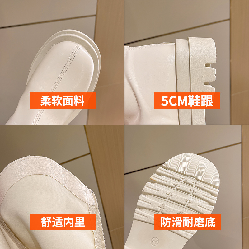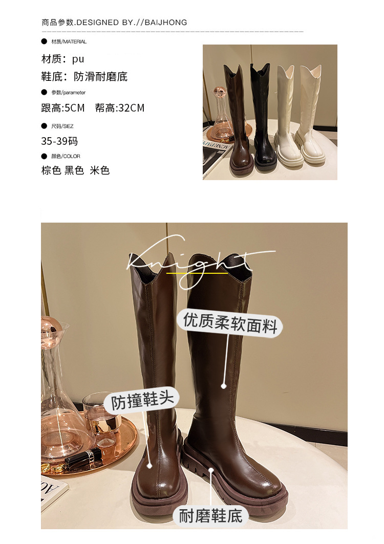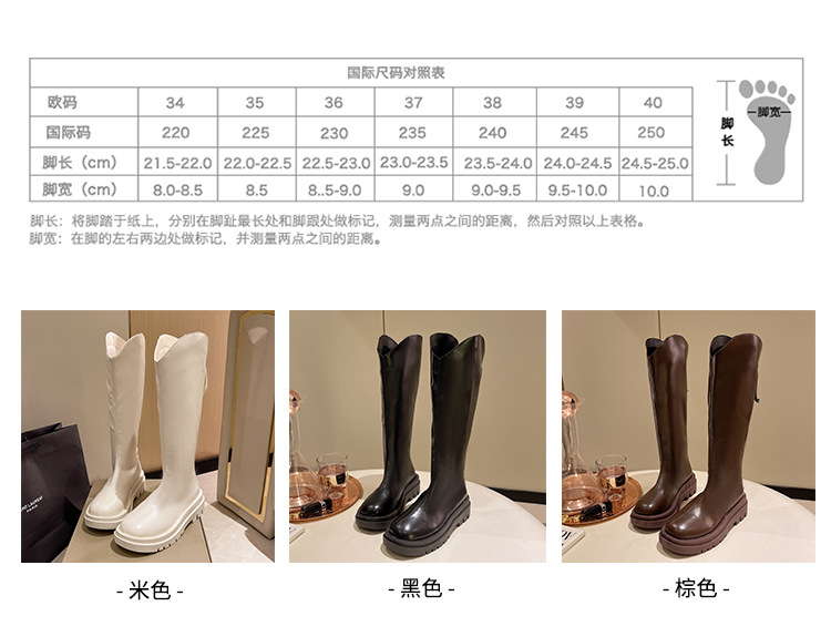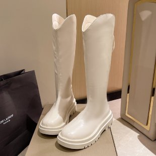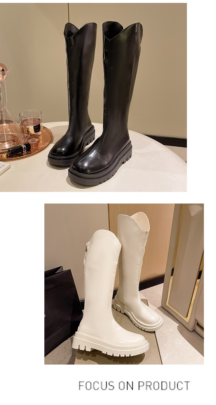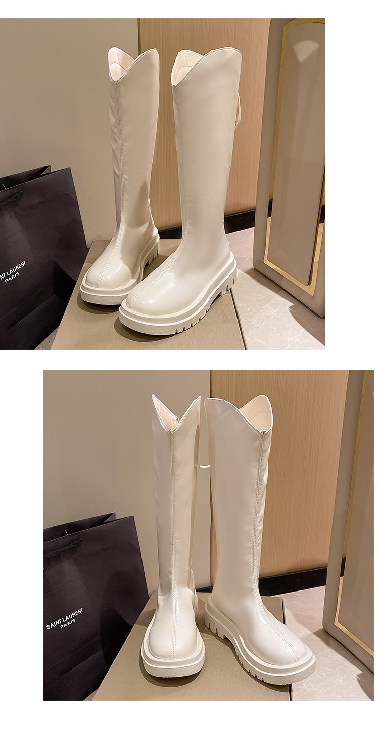 白色长筒靴女2023秋季新款厚底小个子高筒瘦瘦长靴加绒V口骑士靴