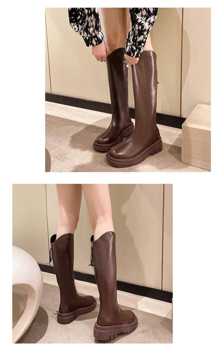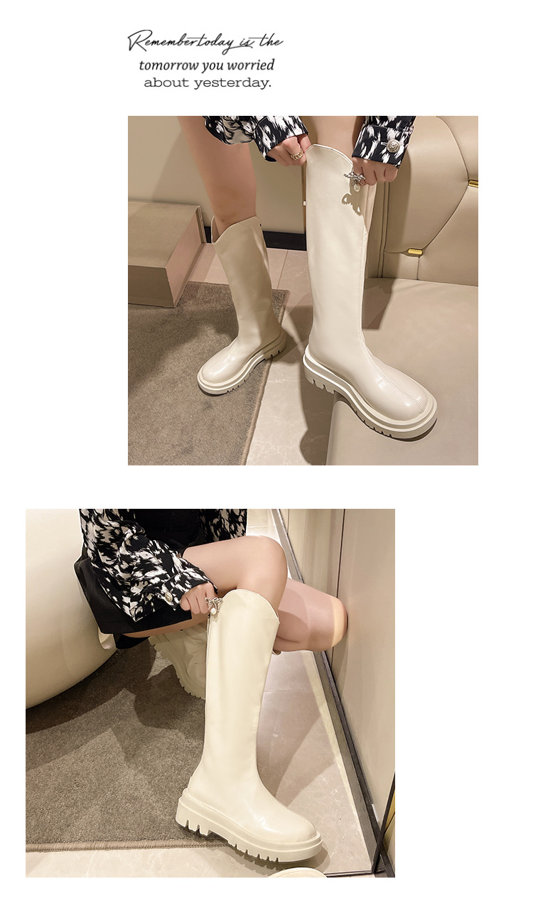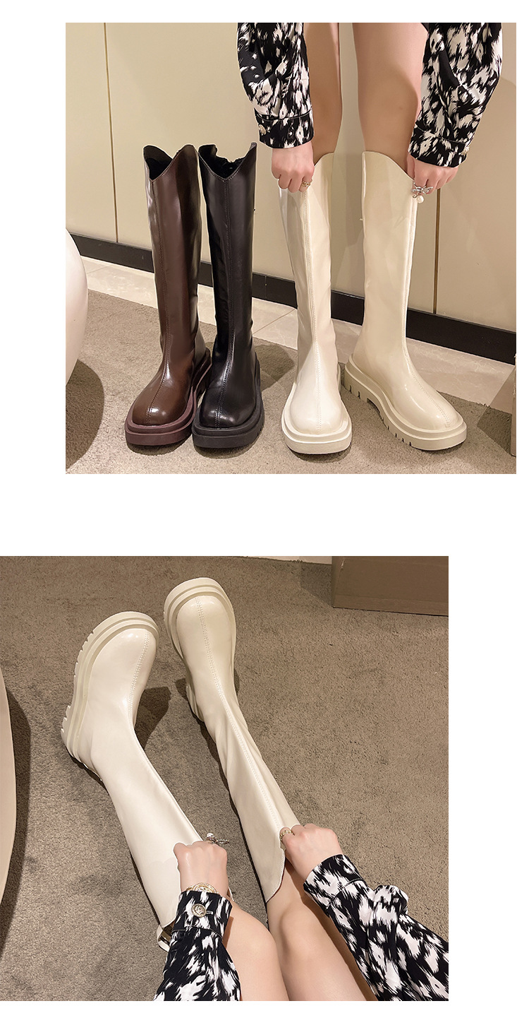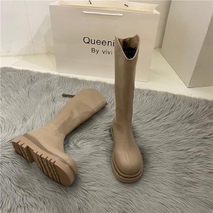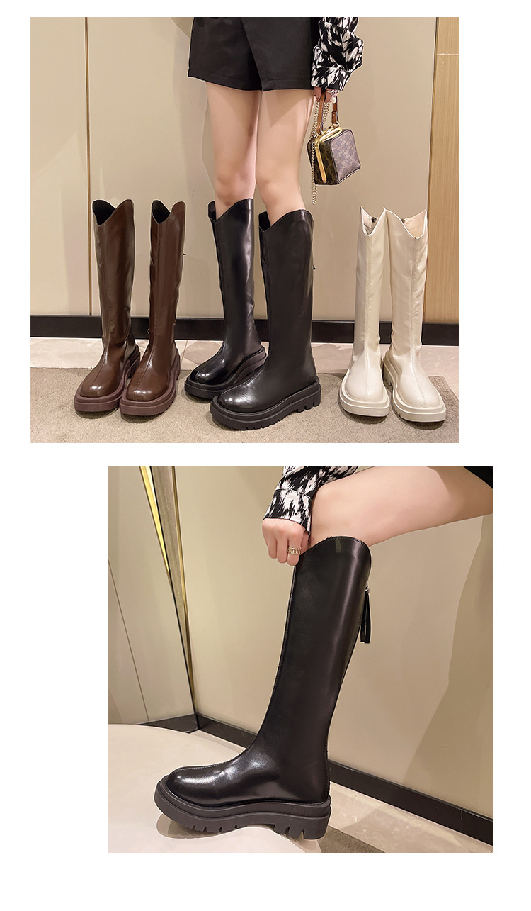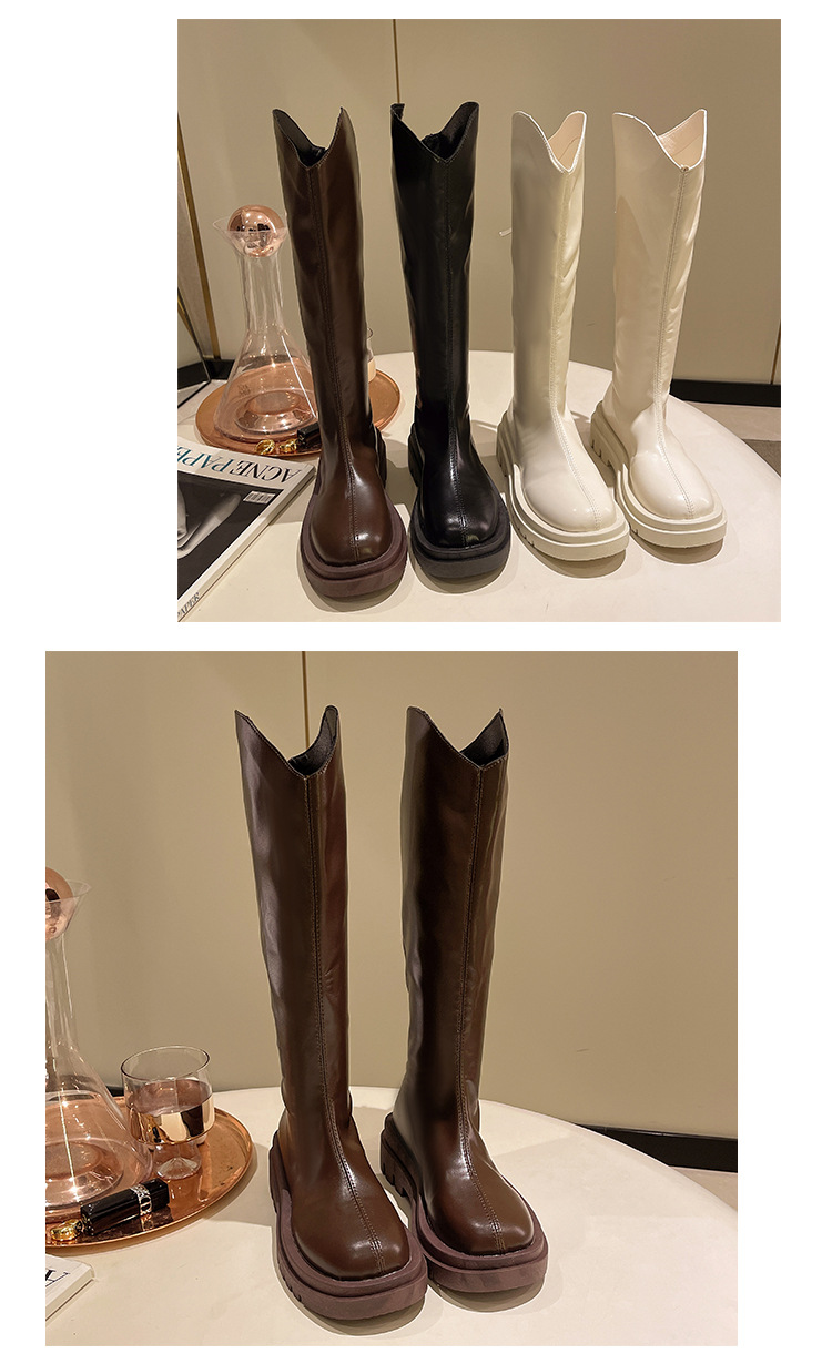 白色长筒靴女2023秋季新款厚底小个子高筒瘦瘦长靴加绒V口骑士靴