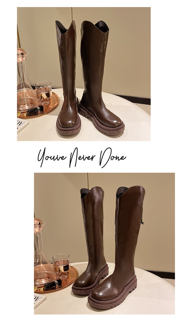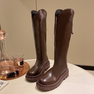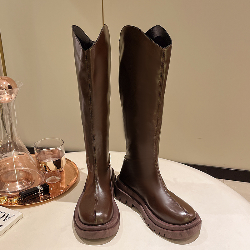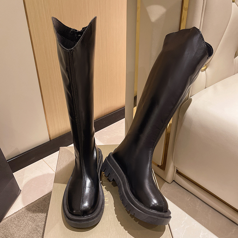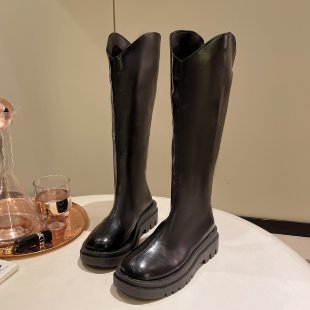 롱 부츠 여성용 2023 가을과 겨울 새로운 두꺼운 바닥 작은 높은 튜브 얇은 부츠 부드러운 가죽 무릎 V-입 나이트 부츠스토어 가기