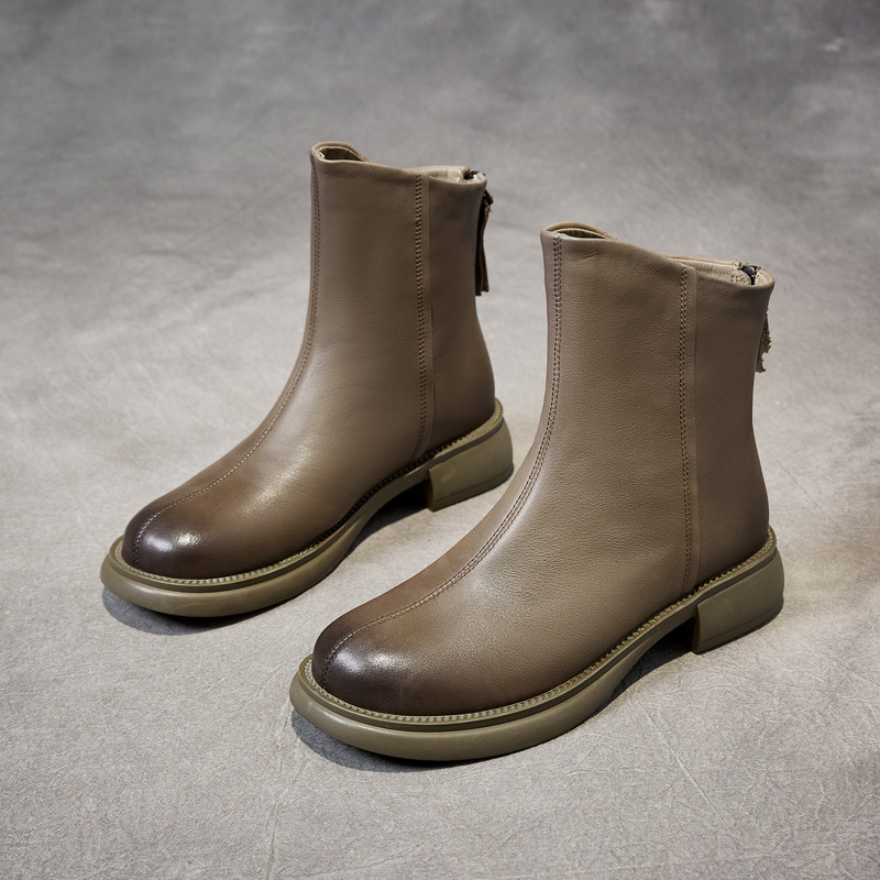 탑 레이어 소가죽 마틴 부츠 편안한 모든 경기 여성 신발 트렌디 한 2023 가을과 겨울 새로운 레트로 컬러 폴리시 짧은 부츠 여성용 수제스토어 가기