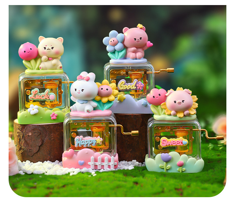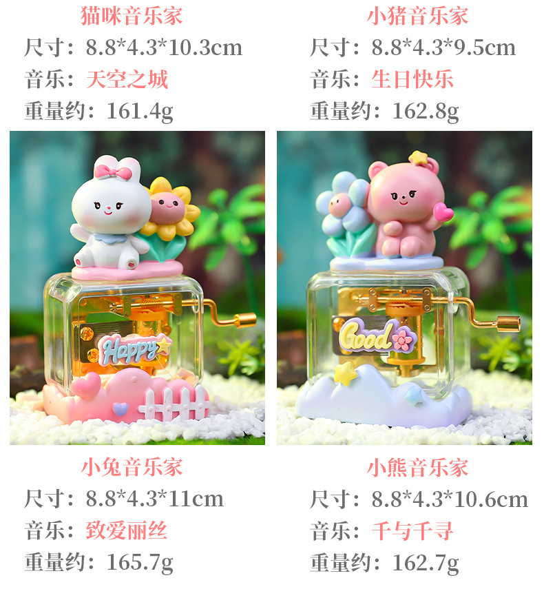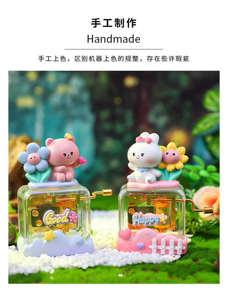 창조적 인 숭배 콘서트 만화 토끼 곰 손 오르골 깜짝 어린이 선물 소녀 방 뮤직 박스스토어 가기