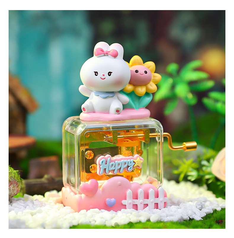 창조적 인 숭배 콘서트 만화 토끼 곰 손 오르골 깜짝 어린이 선물 소녀 방 뮤직 박스
