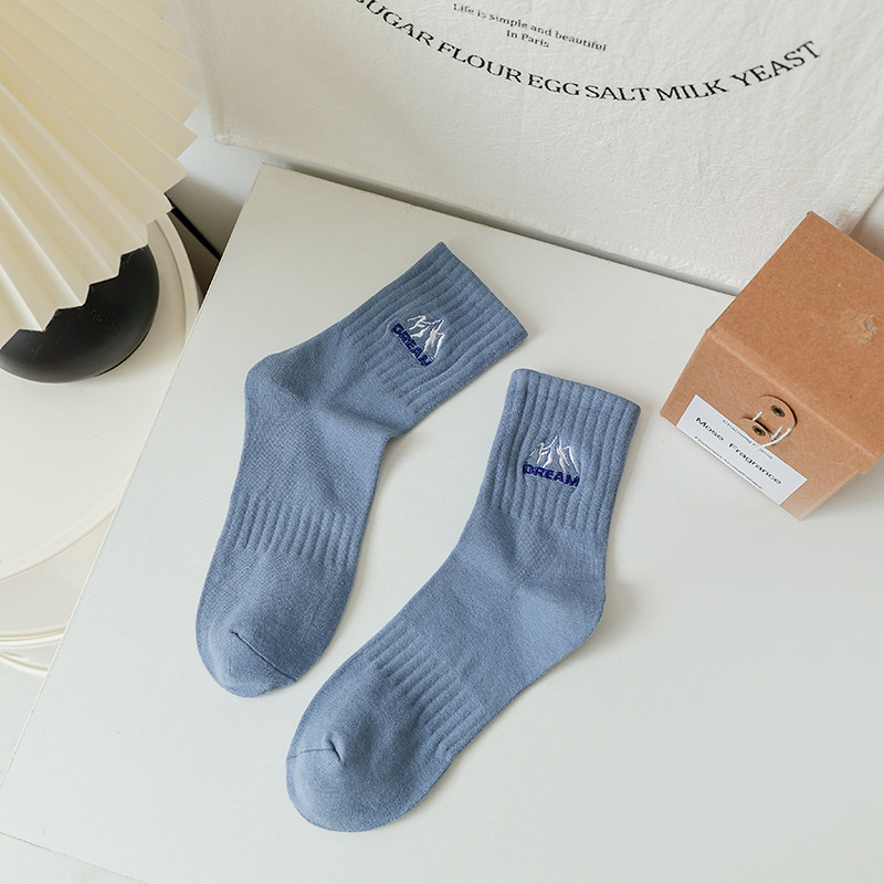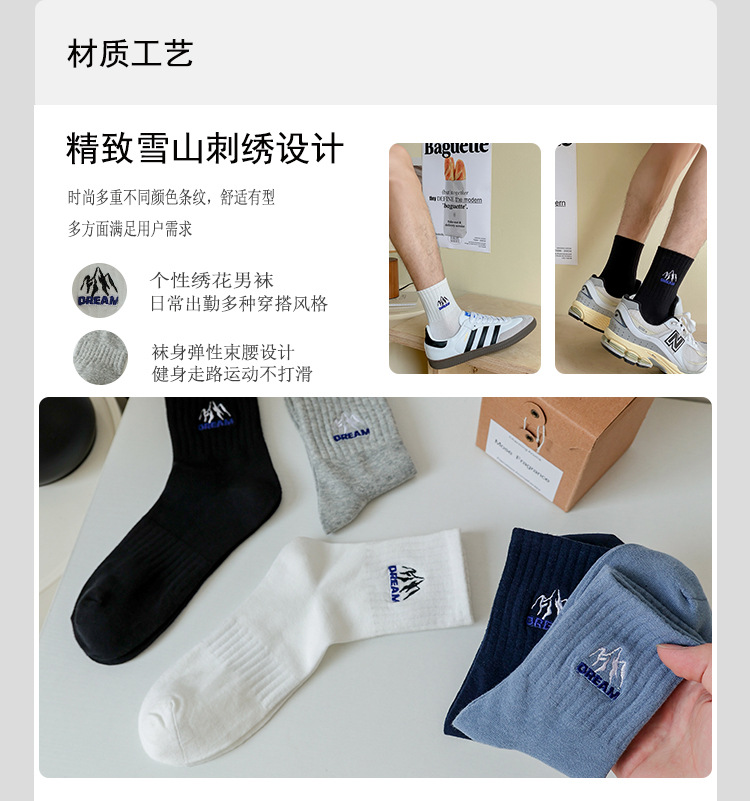 양말 남성용 유행 가을과 겨울 미드 튜브 남성용 양말 새로운 자수 스노우 마운틴 남성용 단색 땀 흡수성 면 양말 스포츠 허리 양말