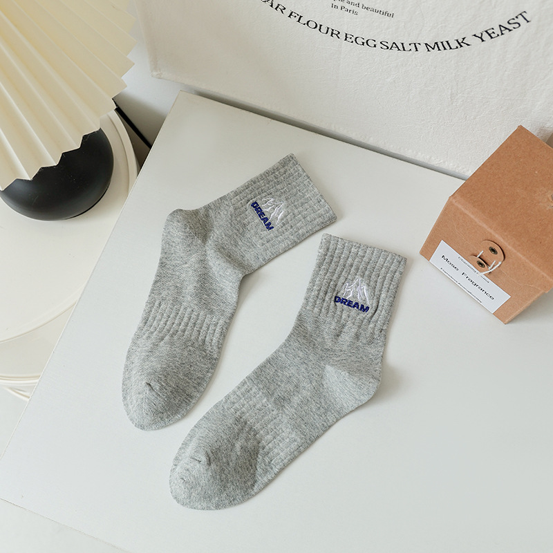 양말 남성용 유행 가을과 겨울 미드 튜브 남성용 양말 새로운 자수 스노우 마운틴 남성용 단색 땀 흡수성 면 양말 스포츠 허리 양말스토어 가기