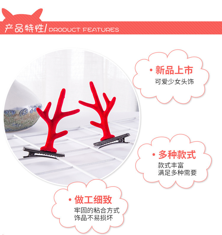 뿔 머리 장식 머리핀 모리 요정 크리스마스 클립 머리핀 여성 사진 헤어 액세서리 귀여운 클립 원피스 도매