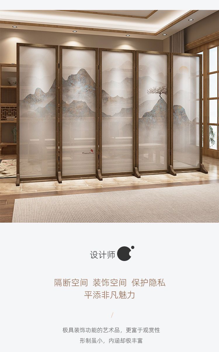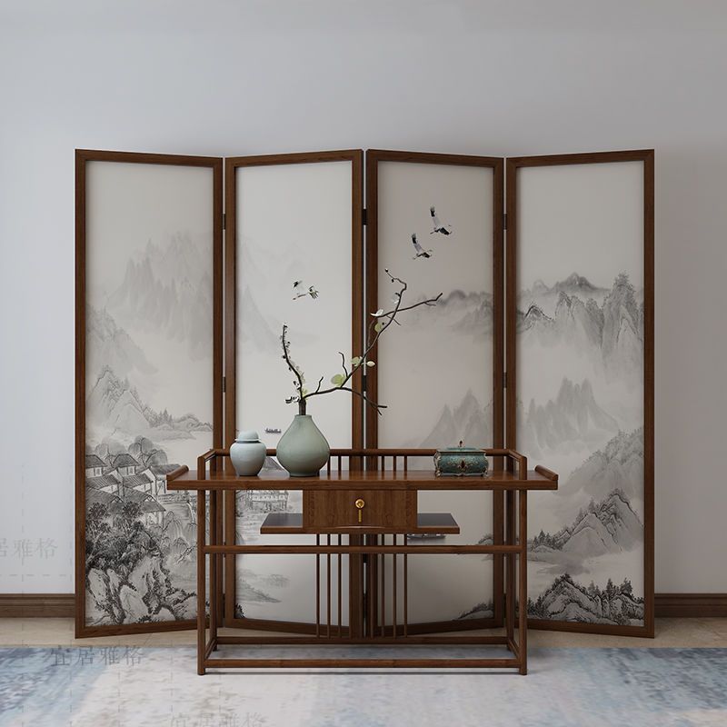 새로운 중국 스타일 화면 파티션 거실 사무실 접이식 모바일 복도 간단한 단단한 나무 홈 음영 풍경 접는 화면