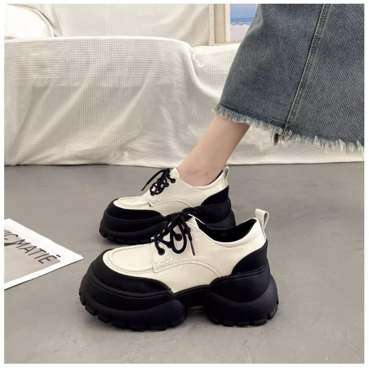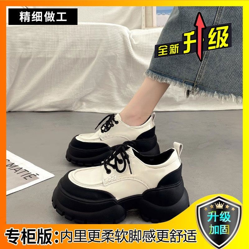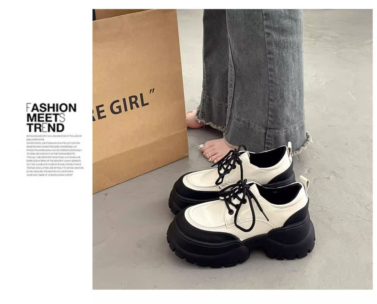 두꺼운 밑창 영국 스타일의 레이스 업 작은 가죽 신발 여성의 2024 새로운 봄과 가을 작은 높이 증가 로퍼 여성 패션 싱글 레이어 신발스토어 가기