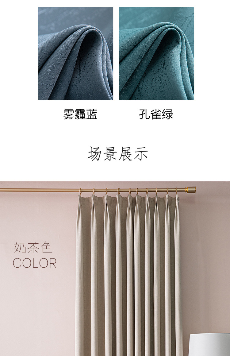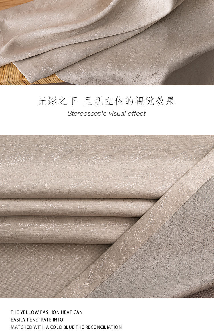 고정밀 자카드 밀크 티 컬러 커튼 심플 모던 침실 거실 베이 창 태양 보호 및 단열 차양 커튼