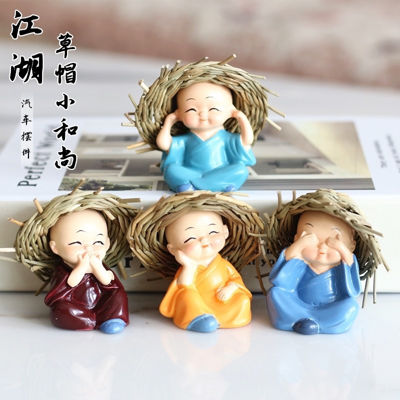 자동차 장식 귀여운 창조적 인 자동차 장식품 봄 4 밀짚 모자 작은 스님 자동차 인테리어 장식