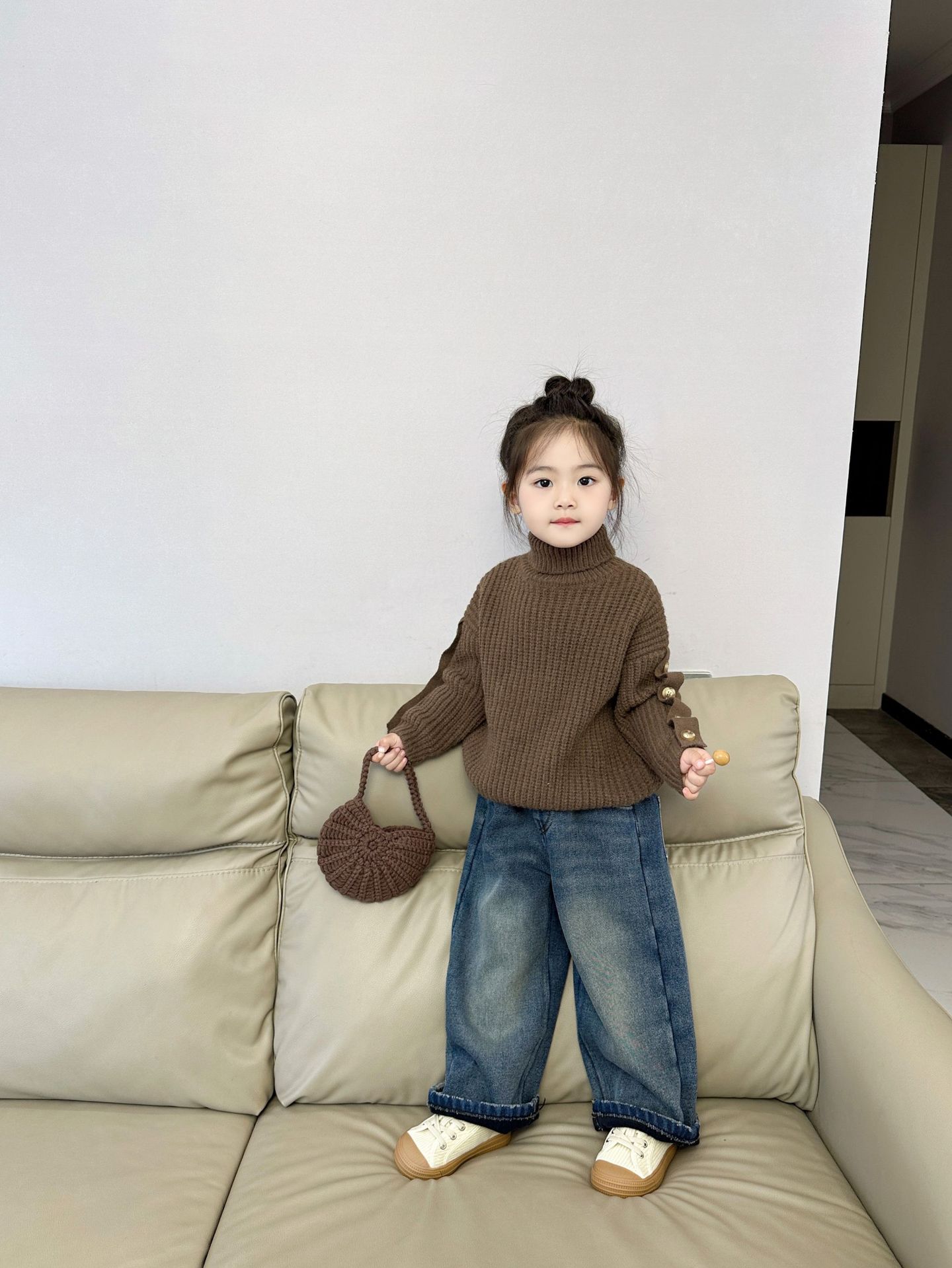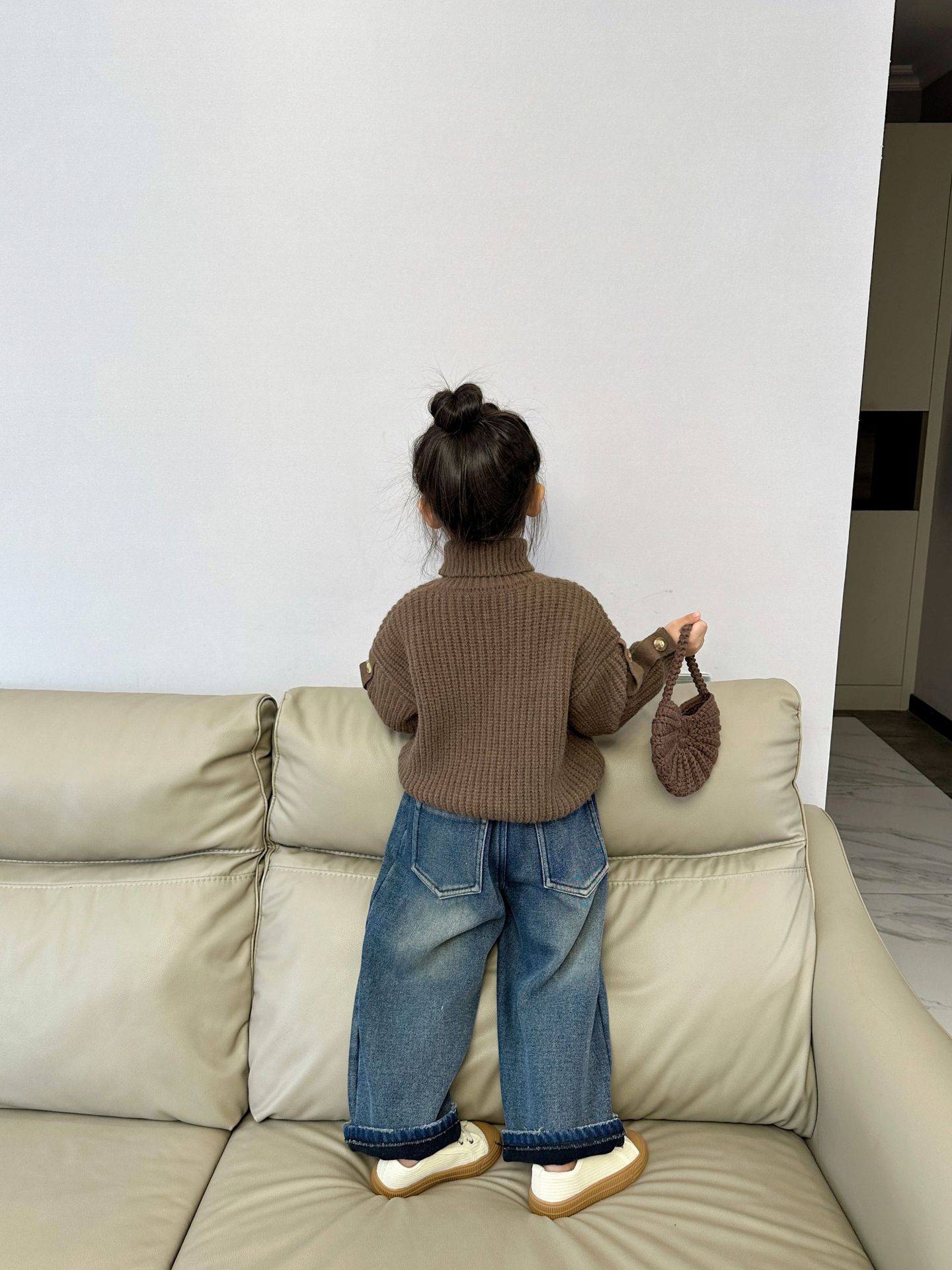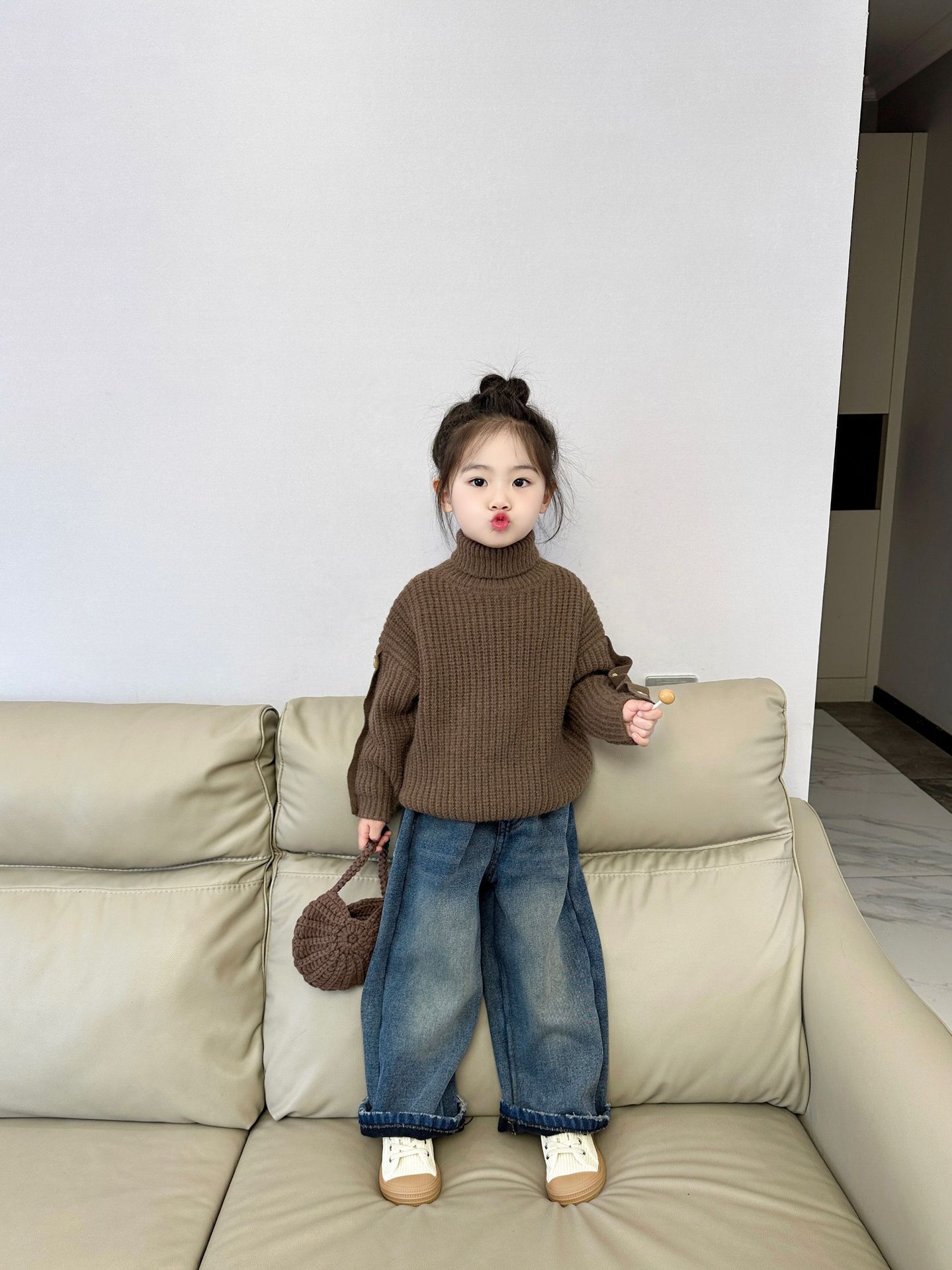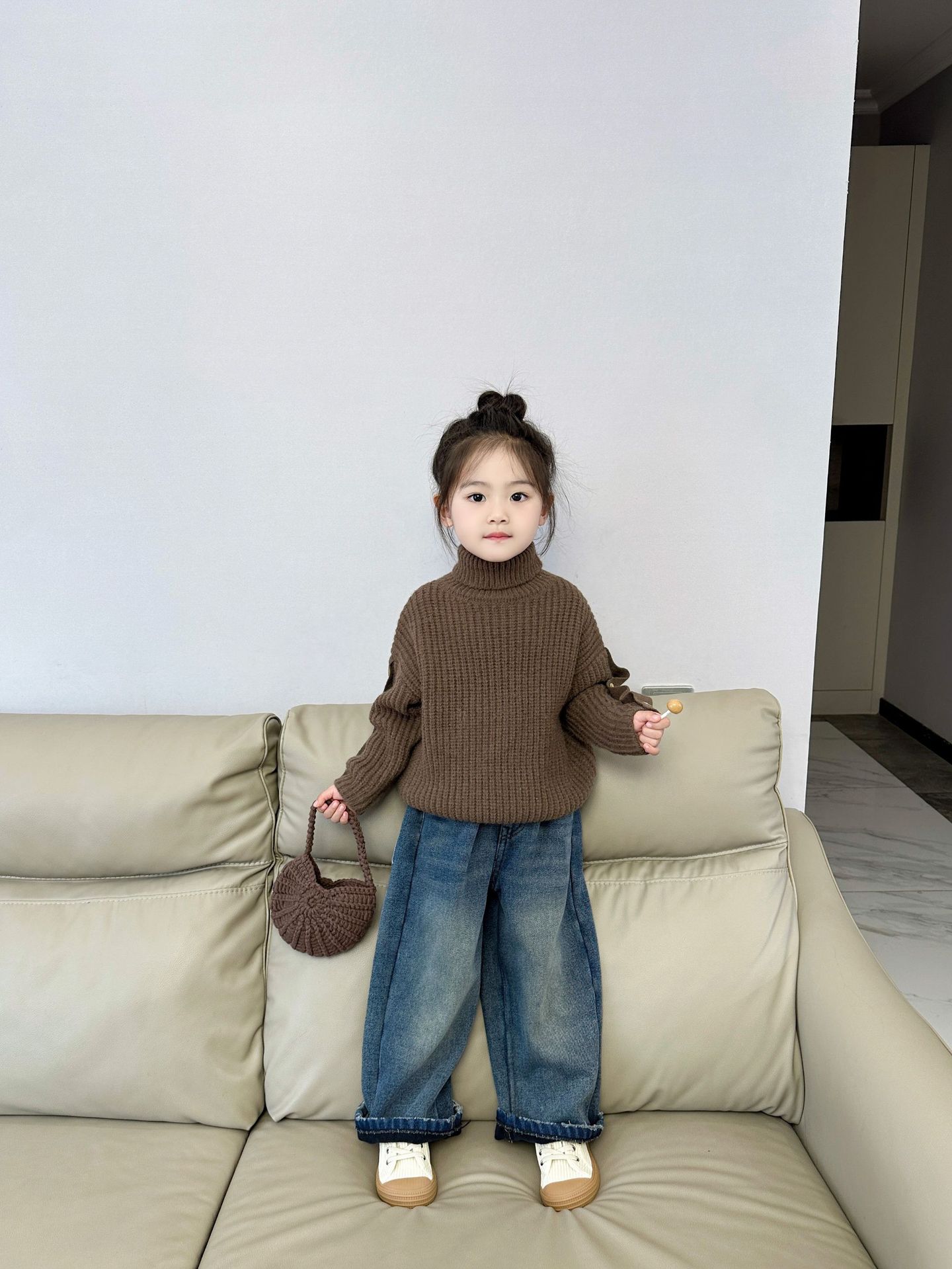반품 불가 원래 가격 47 어린이 가을, 겨울 복고풍 터틀넥 따뜻한 스웨터 소녀 긴팔 니트 탑