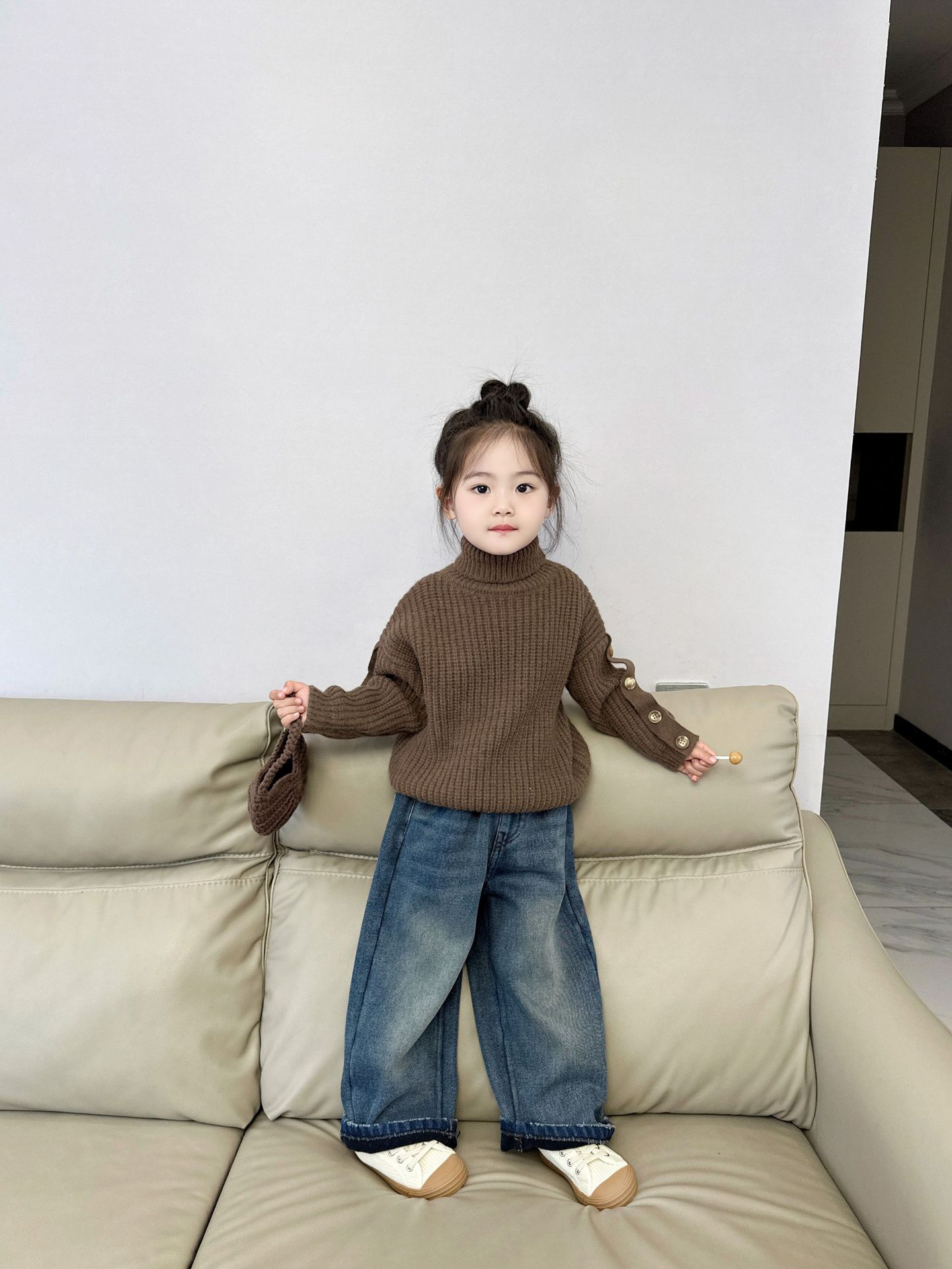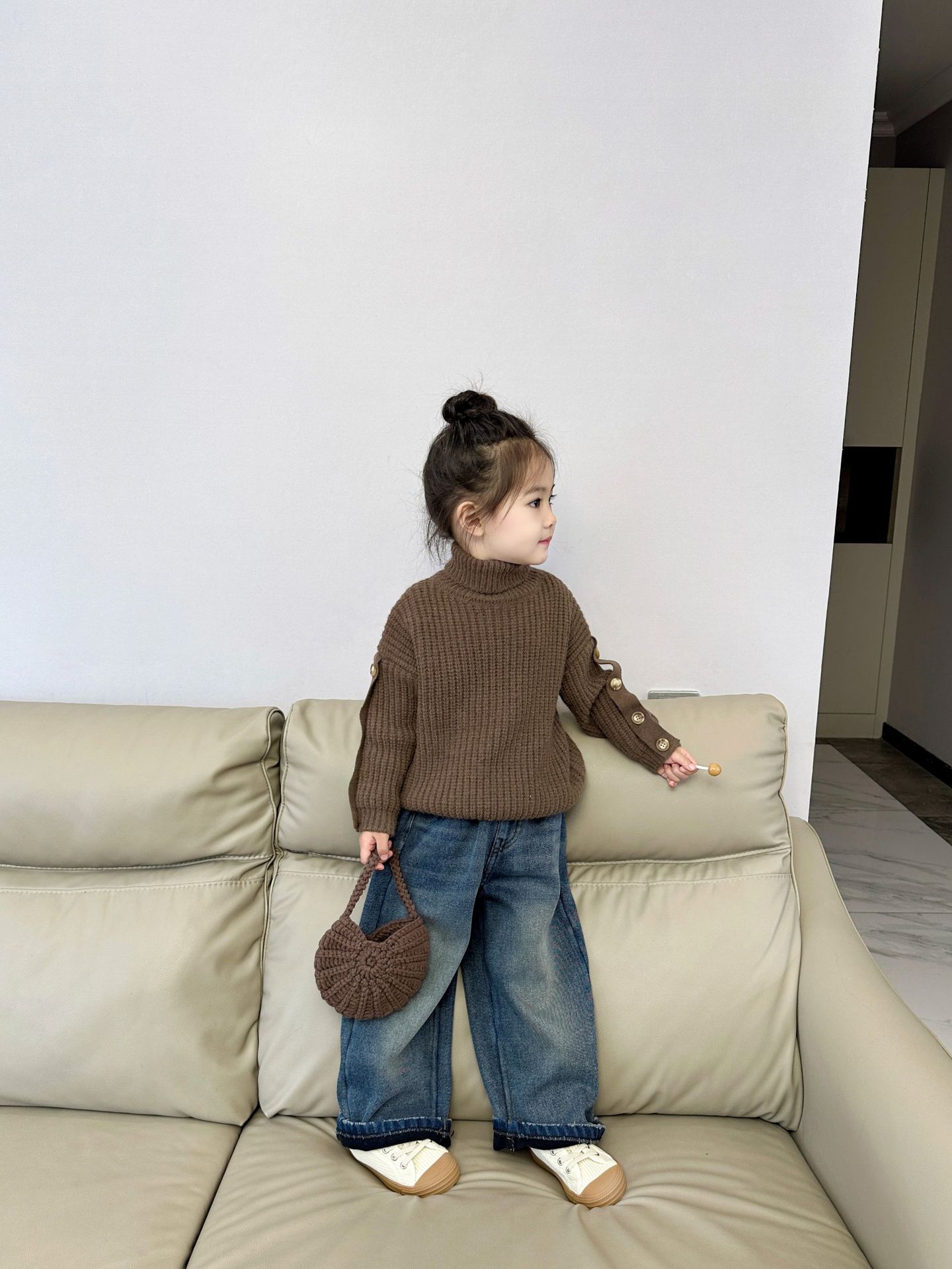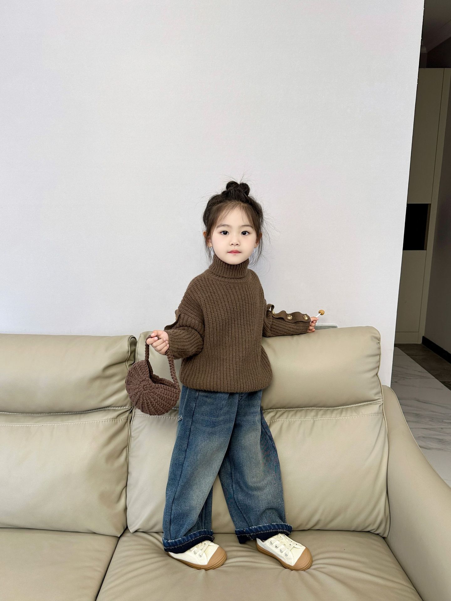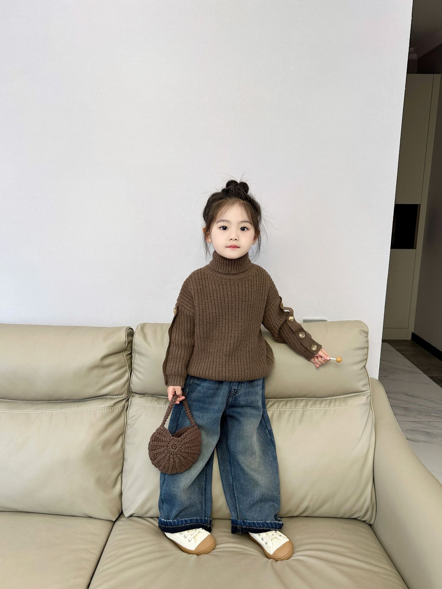 반품 불가 원래 가격 47 어린이 가을, 겨울 복고풍 터틀넥 따뜻한 스웨터 소녀 긴팔 니트 탑