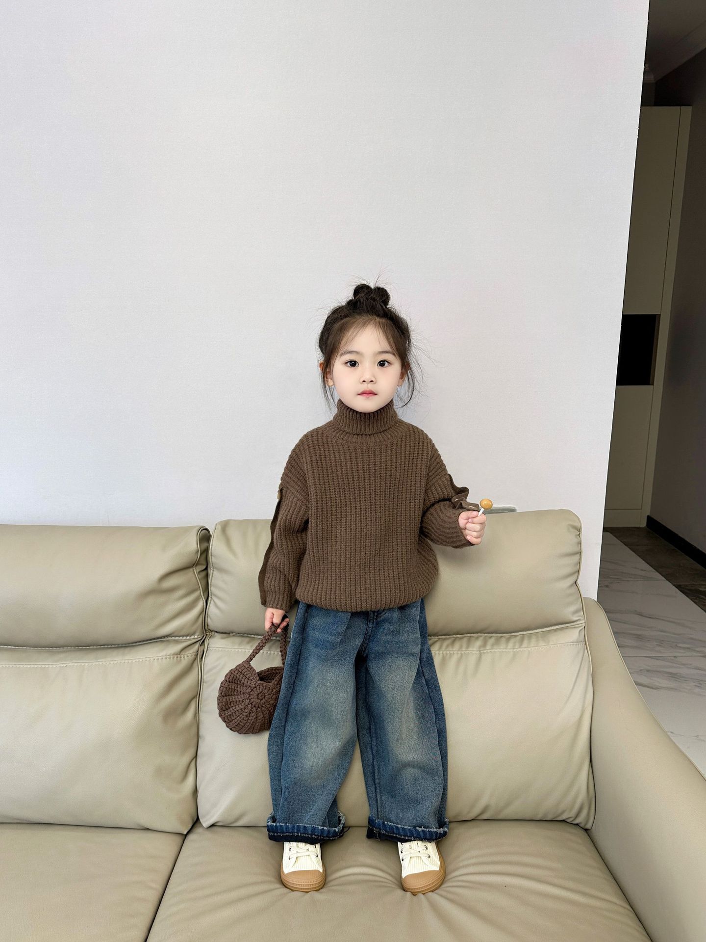 반품 불가 원래 가격 47 어린이 가을, 겨울 복고풍 터틀넥 따뜻한 스웨터 소녀 긴팔 니트 탑스토어 가기
