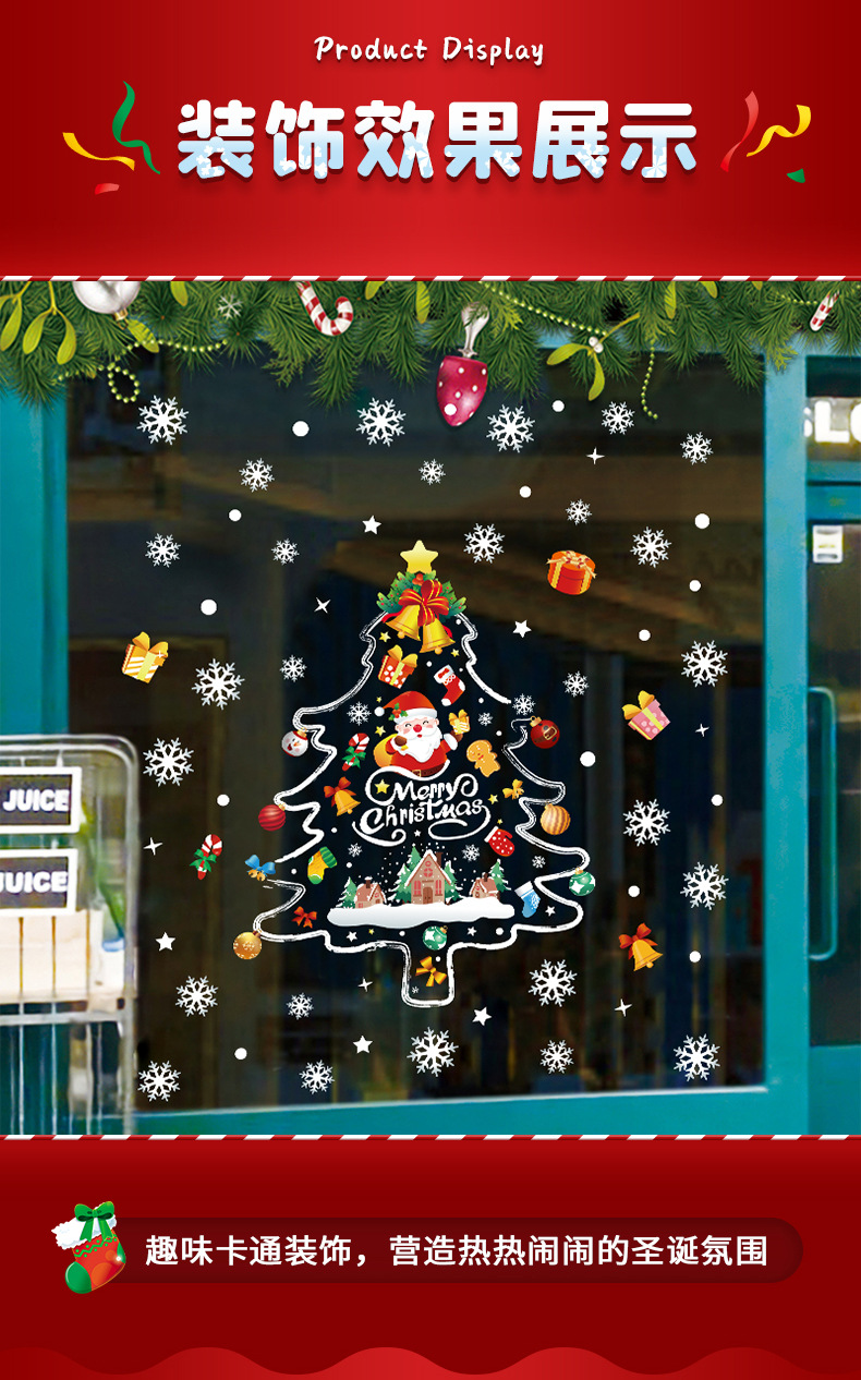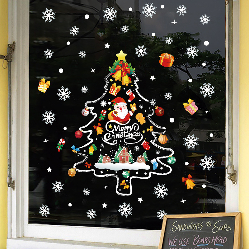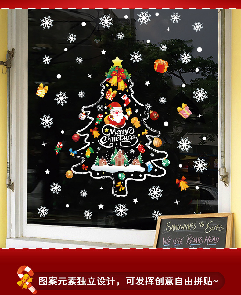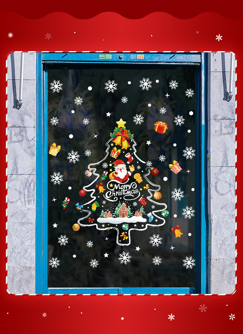 크리스마스 새해 새해 첫날 쇼핑몰 창 유리 정전기 스티커 장식 크리스마스 트리 스티커 분위기 배열스토어 가기