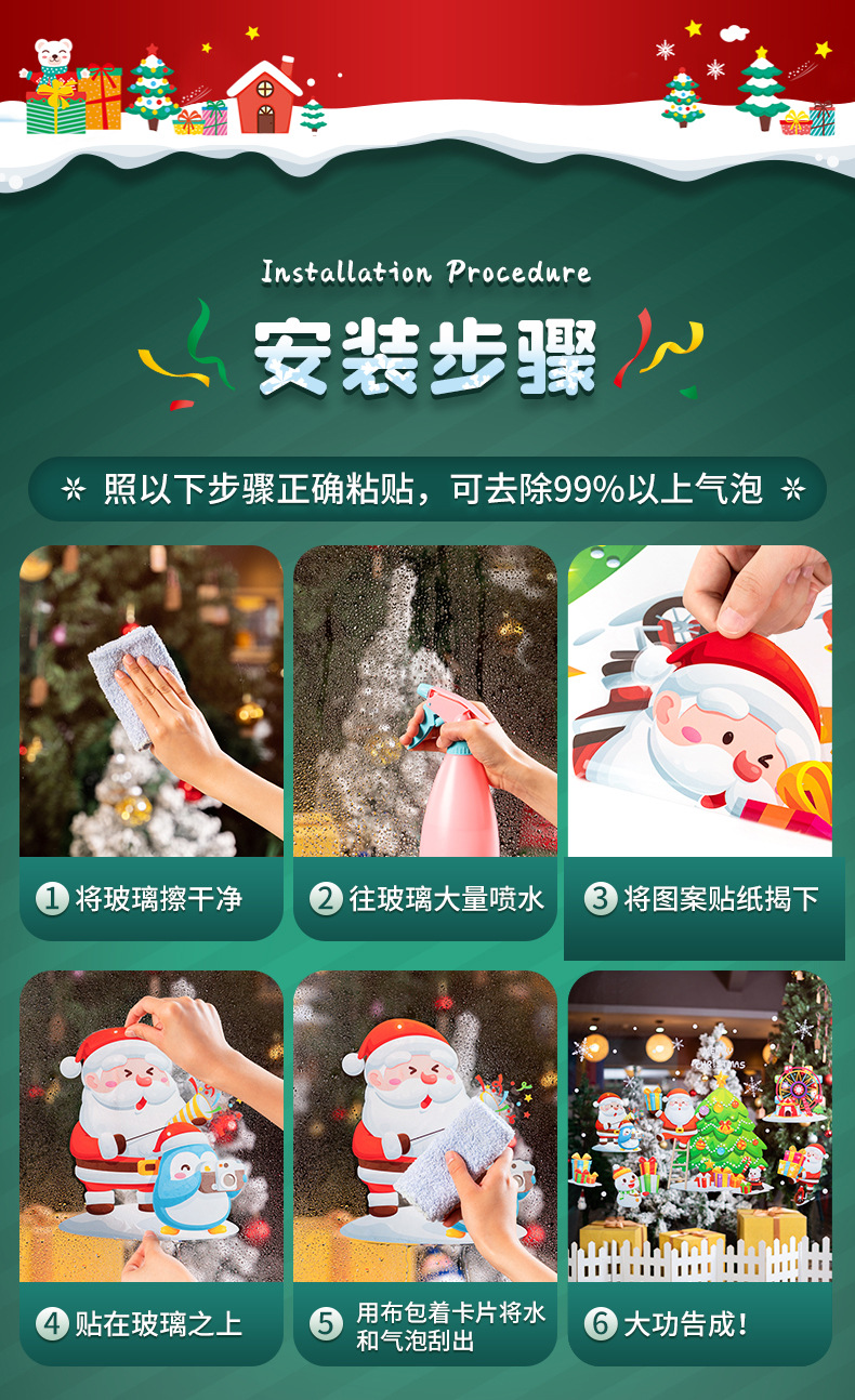 크리스마스 새해 새해 첫날 쇼핑몰 창 유리 정전기 스티커 장식 크리스마스 트리 스티커 분위기 배열