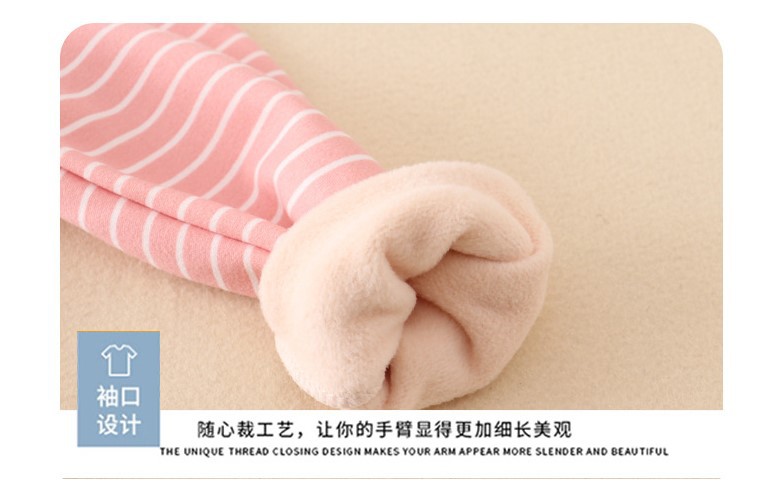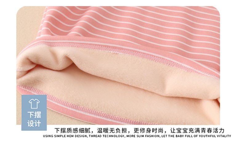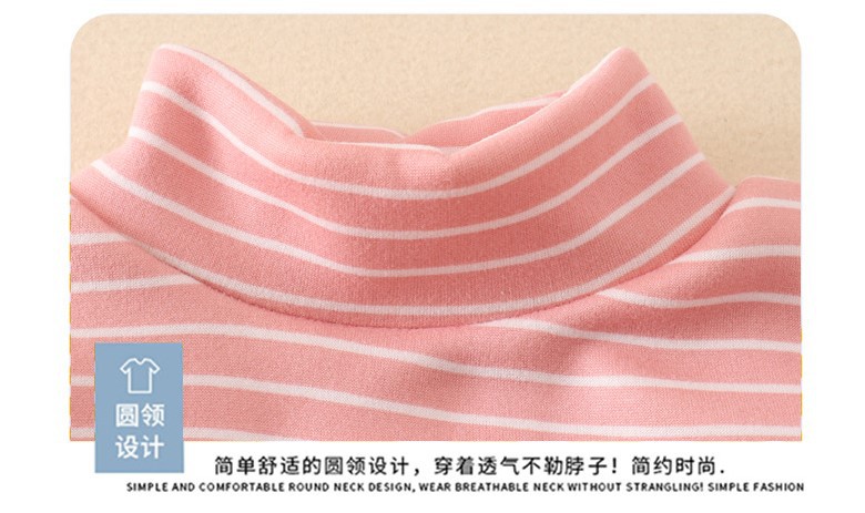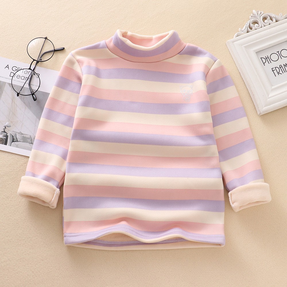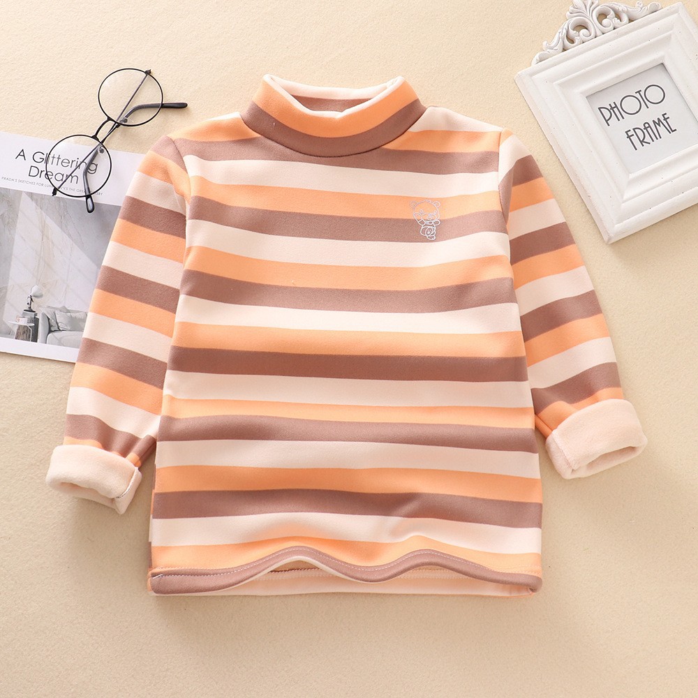 어린이 가을과 겨울 기모 소년과 소녀를위한 두꺼운 따뜻한 하이 칼라베이스 셔츠 스트라이프 긴팔 탑 심플 내부 티셔츠