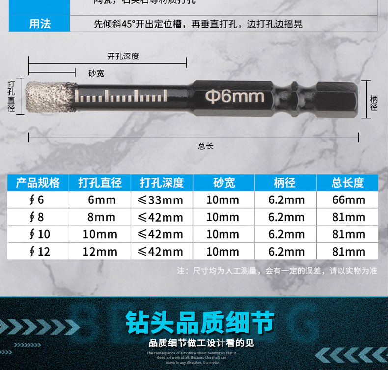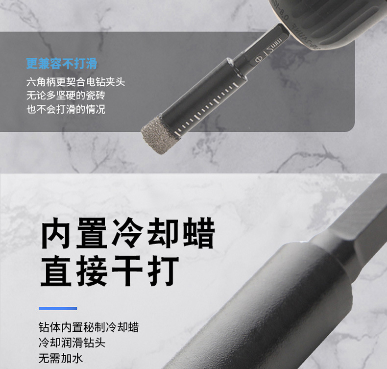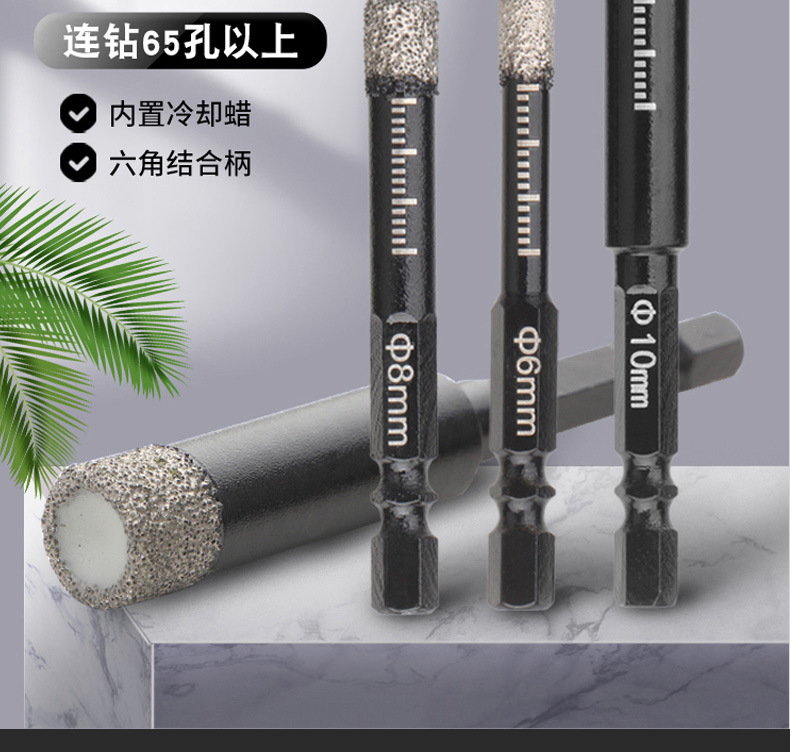 납땜 드라이 드릴 비트 세라믹 타일 드릴 비트 6mm 유리화 벽돌 화강암 대리석 특수 육각 생크 구멍 오프너스토어 가기
