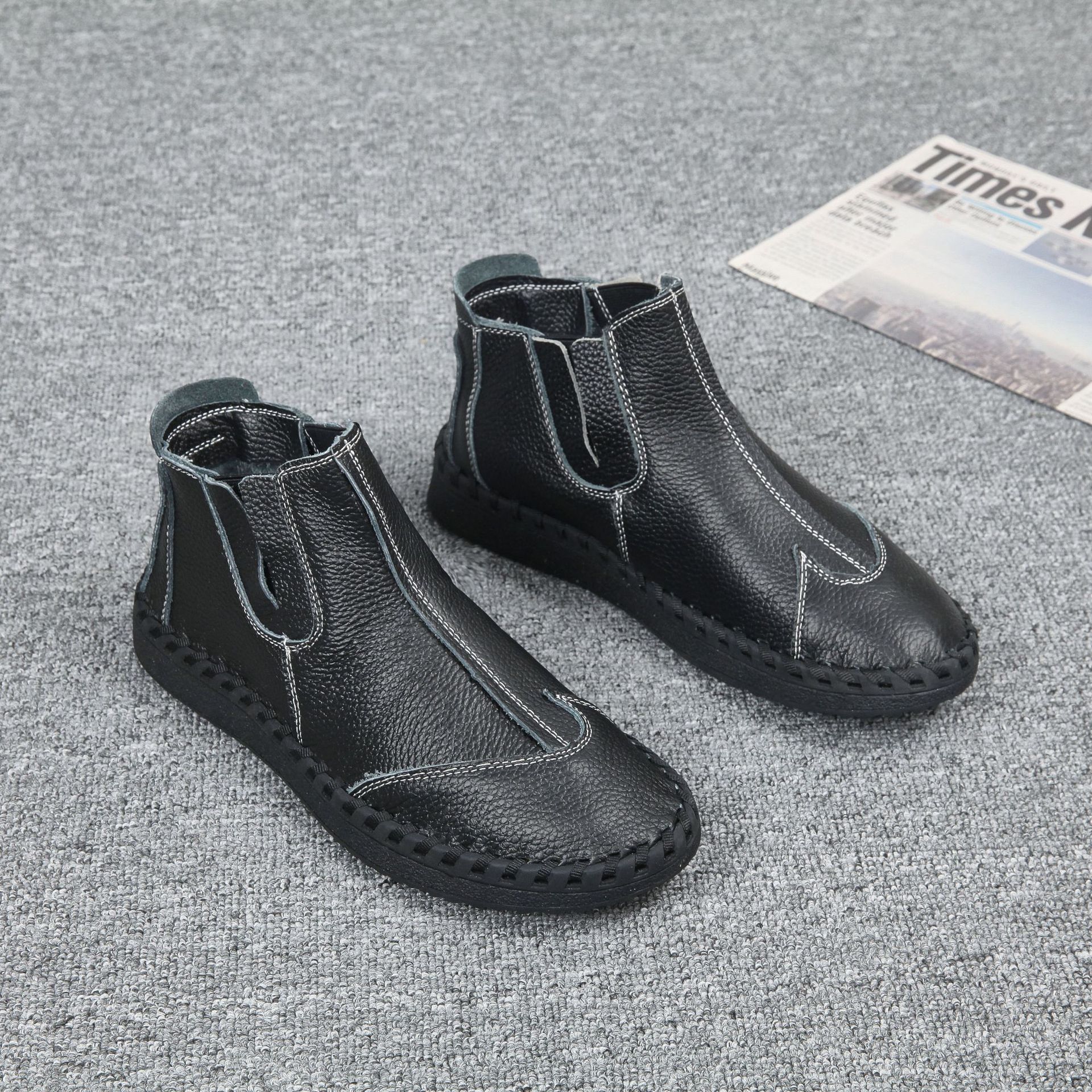 남성용 가을과 겨울 새 가죽 캐주얼 신발 하이탑 미들 탑 레이지 원 스텝 탑 레이어 소가죽 소프트 솔 수제 드라이빙 슈즈스토어 가기