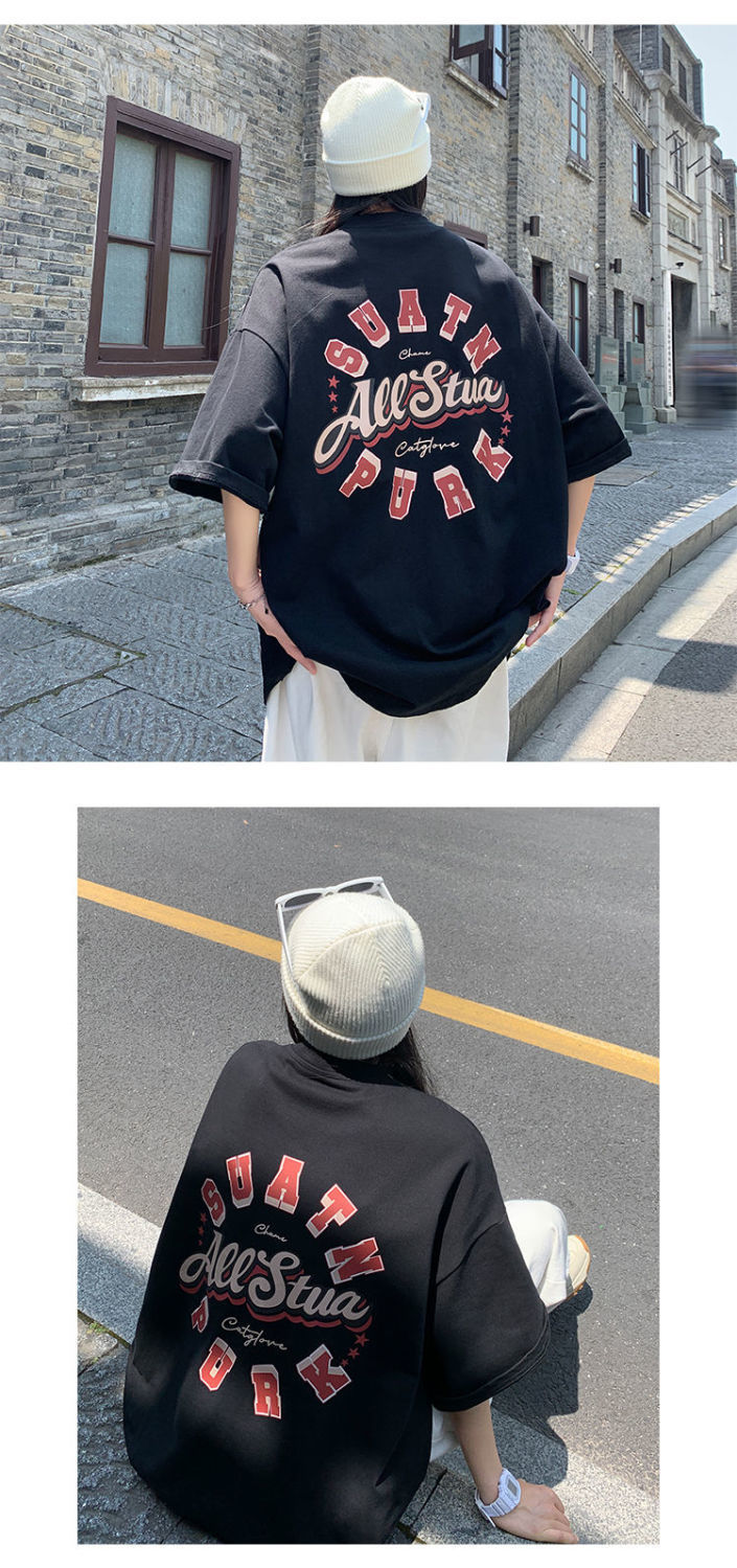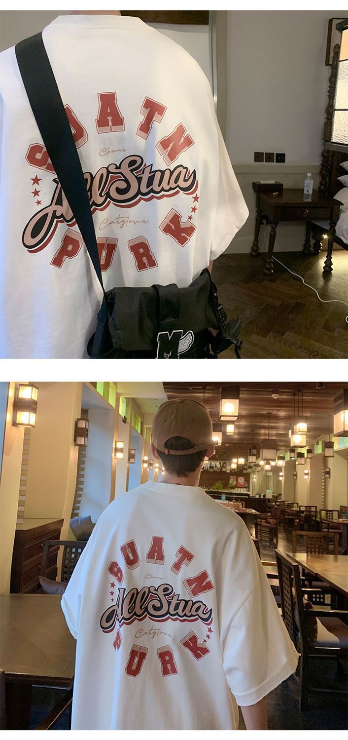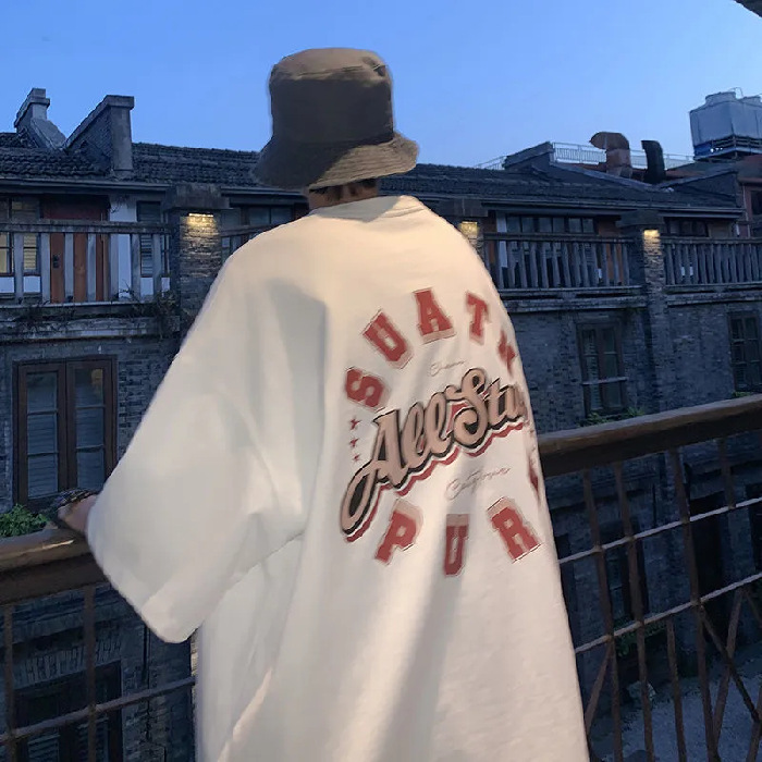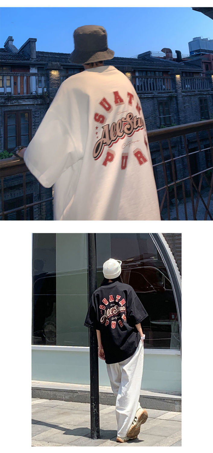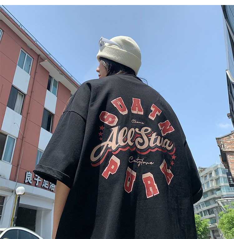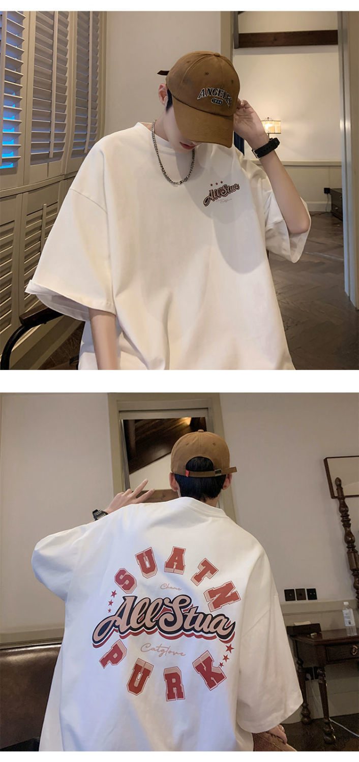 2024년 신상 여름 남성 반팔 티셔츠, 새로운 ins 스타일 프린트, 홍콩 스타일 트렌드, 하라주쿠 스타일 커플 반팔 티셔츠스토어 가기