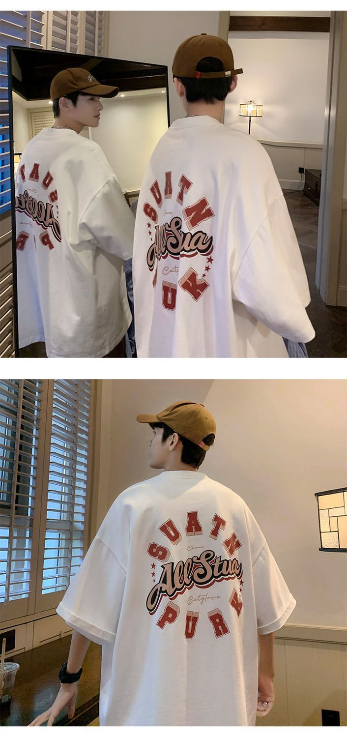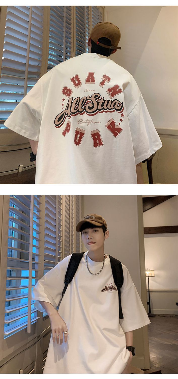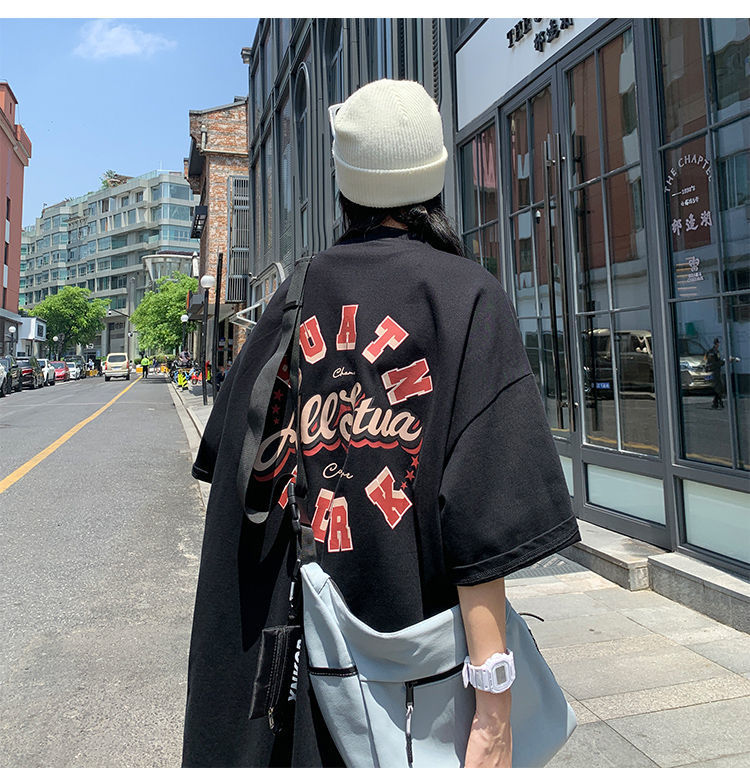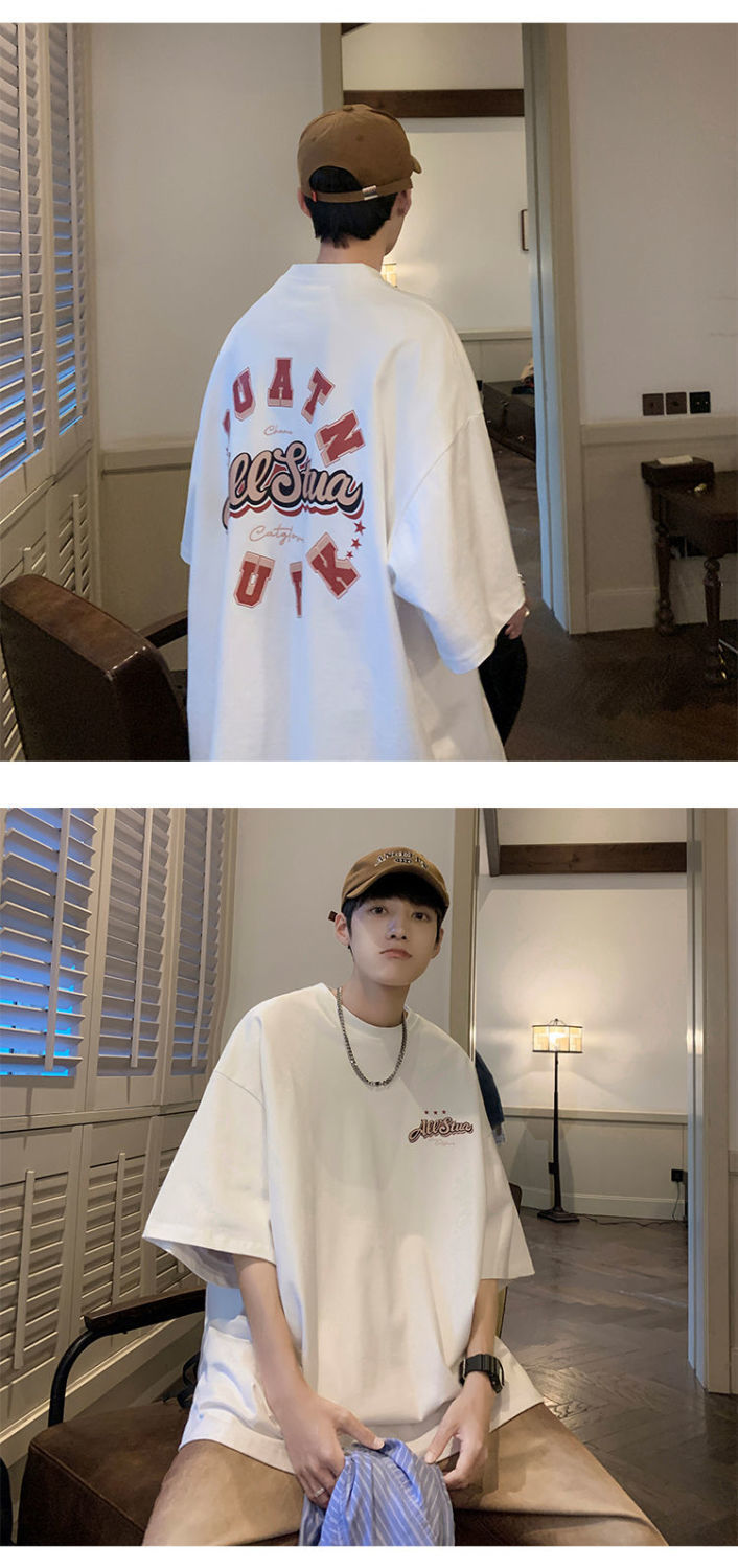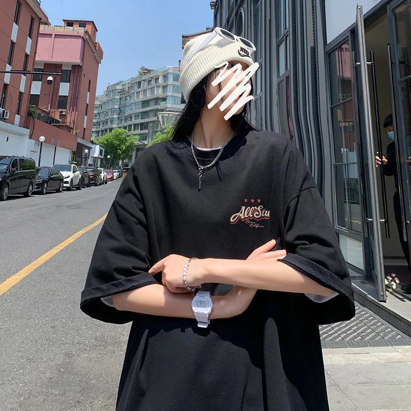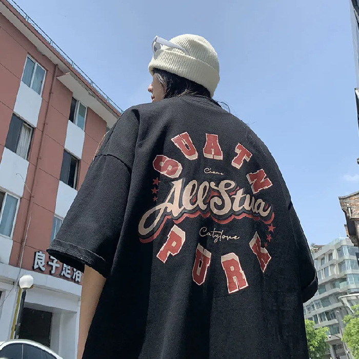 2024년 신상 여름 남성 반팔 티셔츠, 새로운 ins 스타일 프린트, 홍콩 스타일 트렌드, 하라주쿠 스타일 커플 반팔 티셔츠스토어 가기
