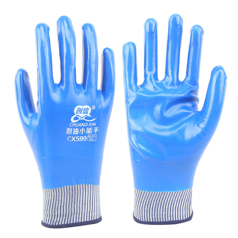 Chuangxin 599 내마모성 니트릴 보호 노동 보호 장갑 담근 산업 화학 풀 행잉 유지 보수 내유성 소프트 방수