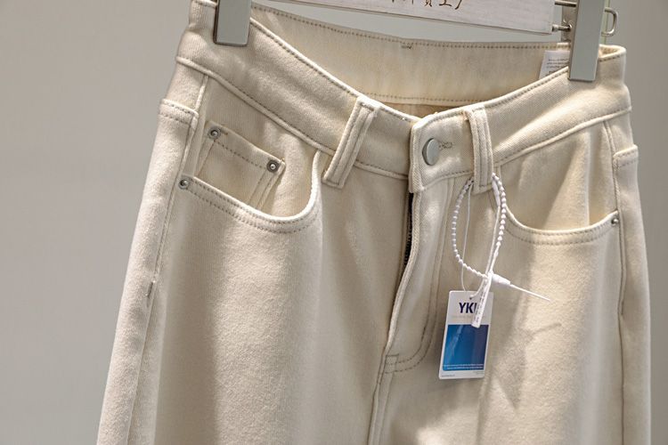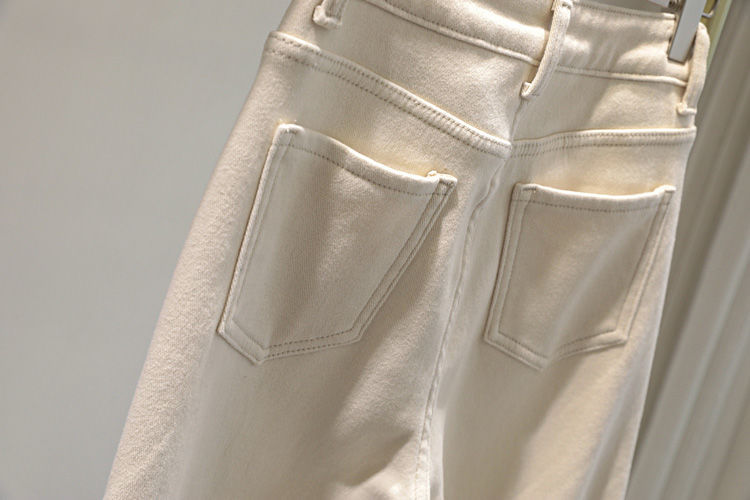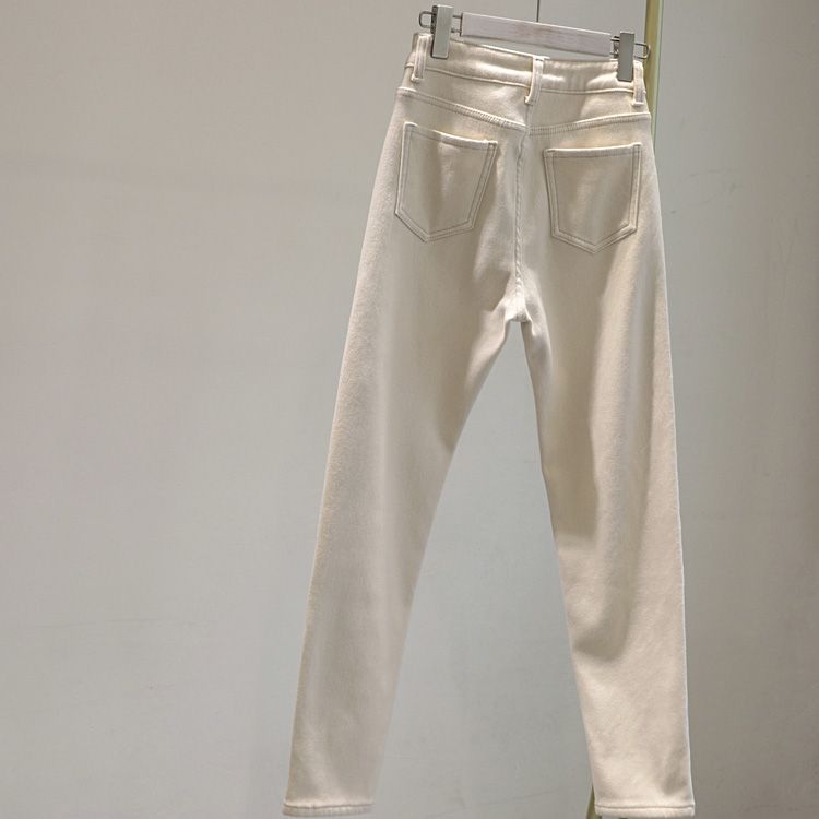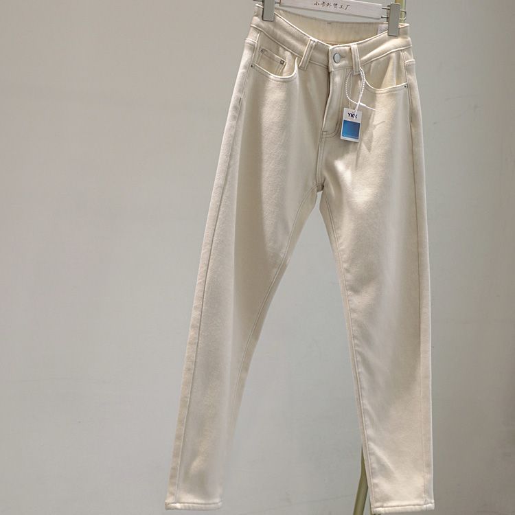2024 가을 겨울 여성용 벨벳 스트레치 베이지 청바지, 단색, 심플하고 다용도, 아빠 바지, 슬림핏 하렘 팬츠스토어 가기