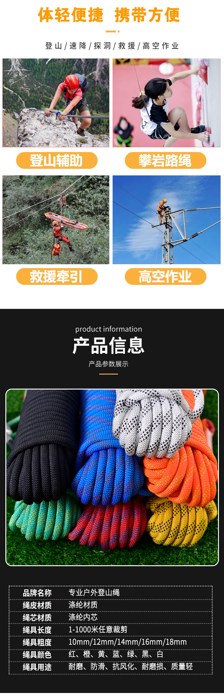 등산용 로프 안전벨트 컬러 나일론 로프 꼬임 로프 야외 빨랫줄 조임줄 우산줄 묶음