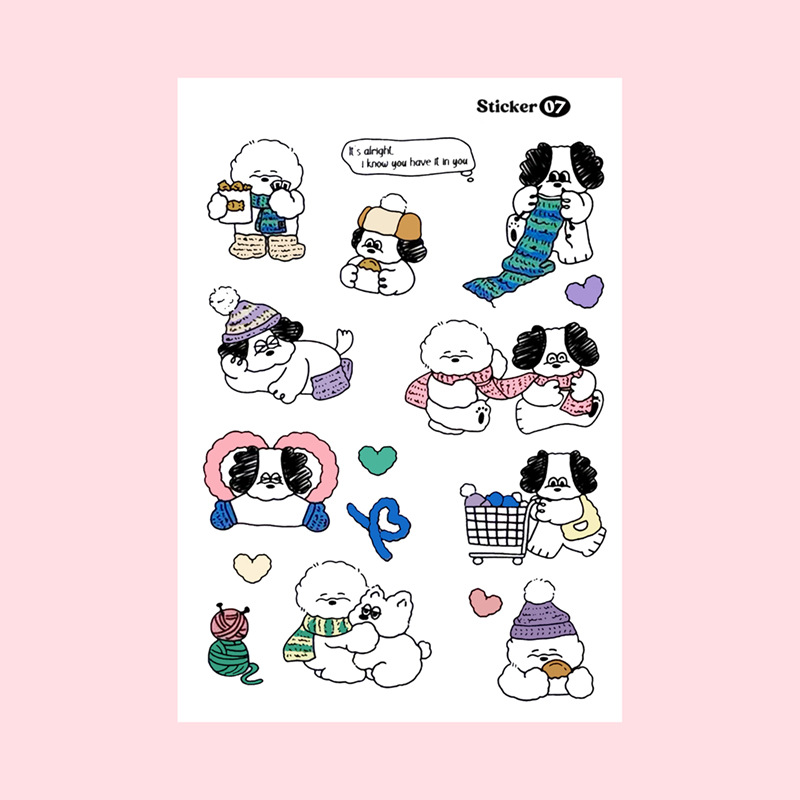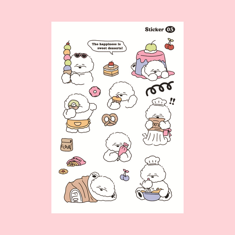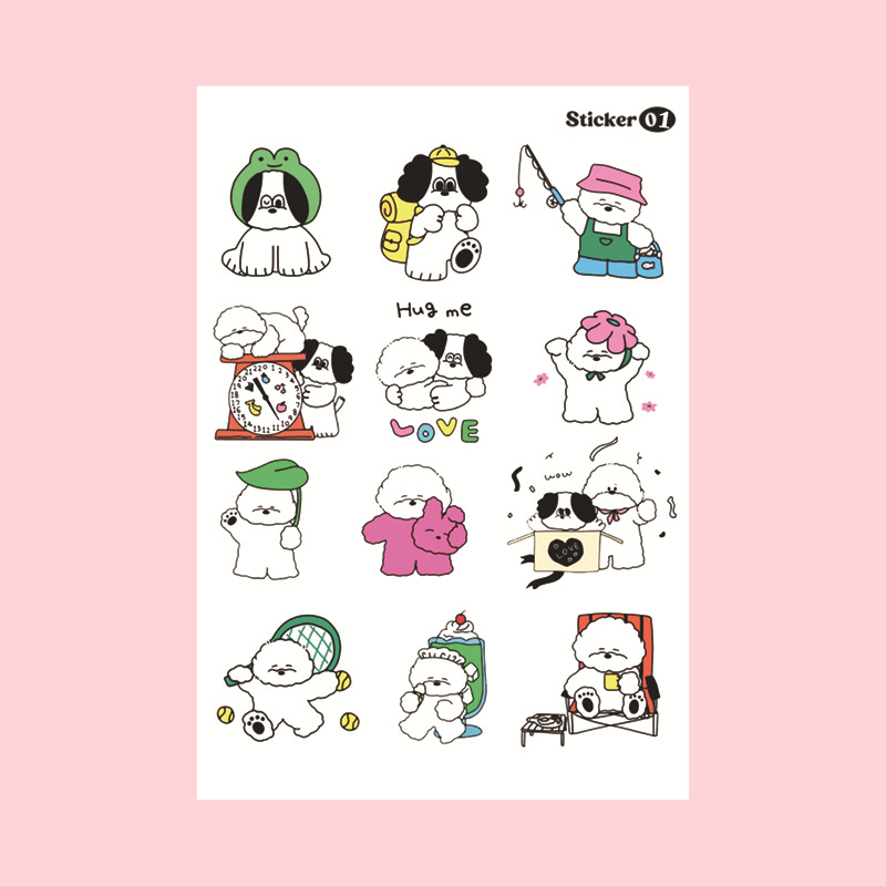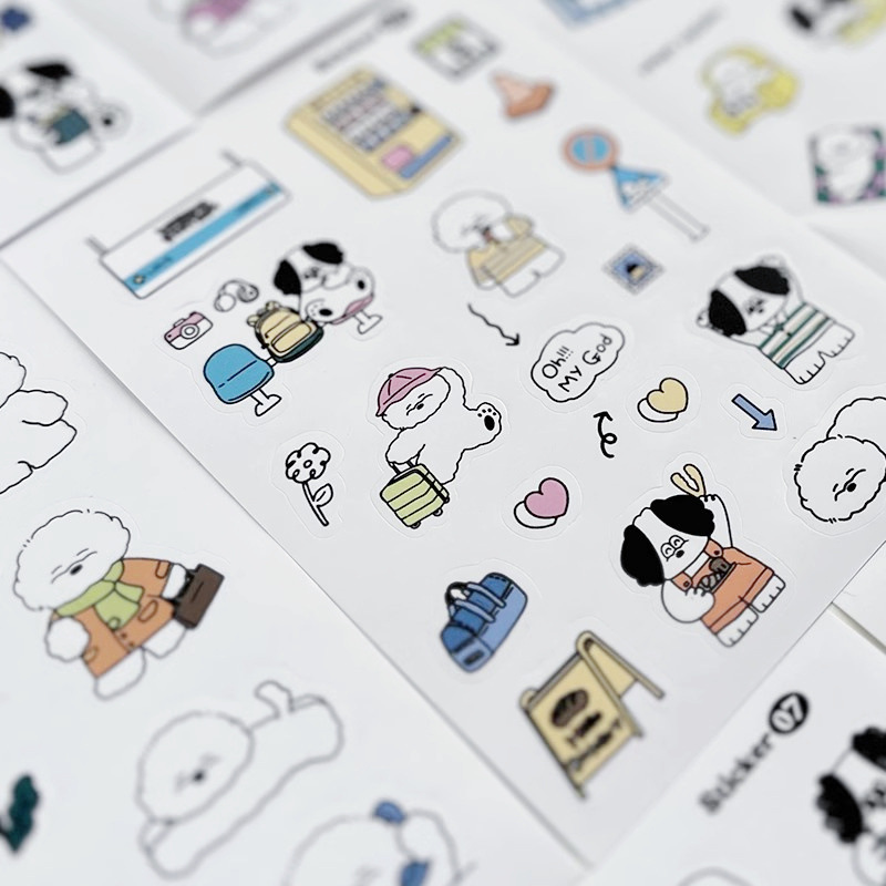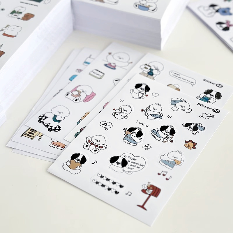 In 한국 스케치 스티커 새로운 프랑스어 귀여운 곱슬 개 매일 손 계정 만화 스티커 없음 마크 스티커스토어 가기