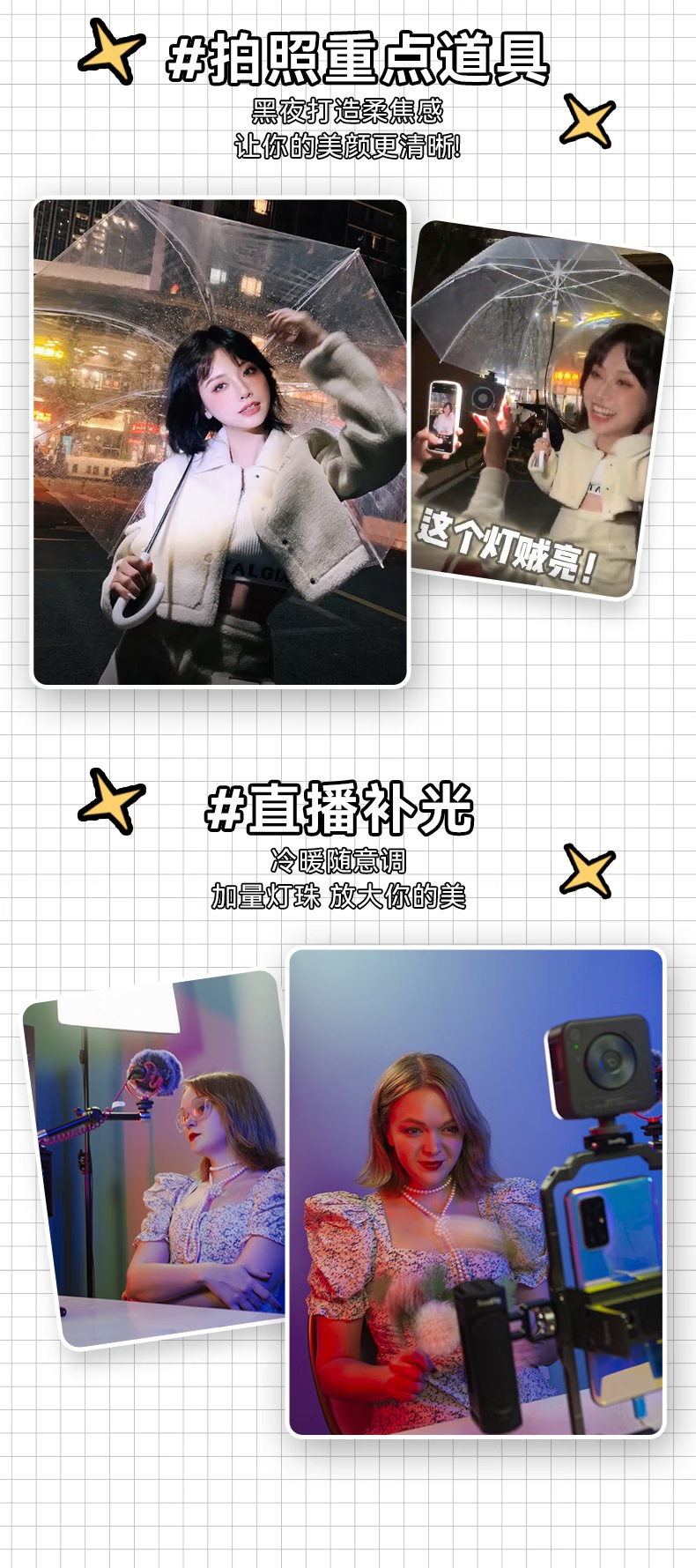 ¥99.00 富图宝FotoproDIGI-9300PLUS铝镁合金摄影摄像便携式主播支架1.8m   ¥29.00 纽尔(NEEWER)长焦广角微距鱼眼镜头适用17mm螺纹镜头背板夹座手   ¥1919.00 纽尔(NEEWER)CB200W聚光灯LED补光灯 双色温人像直播摄影棚影楼   ¥39.00 纽尔(NEEWER)适用于三星S23 Ultra金属兔笼双手持套装摄影视频