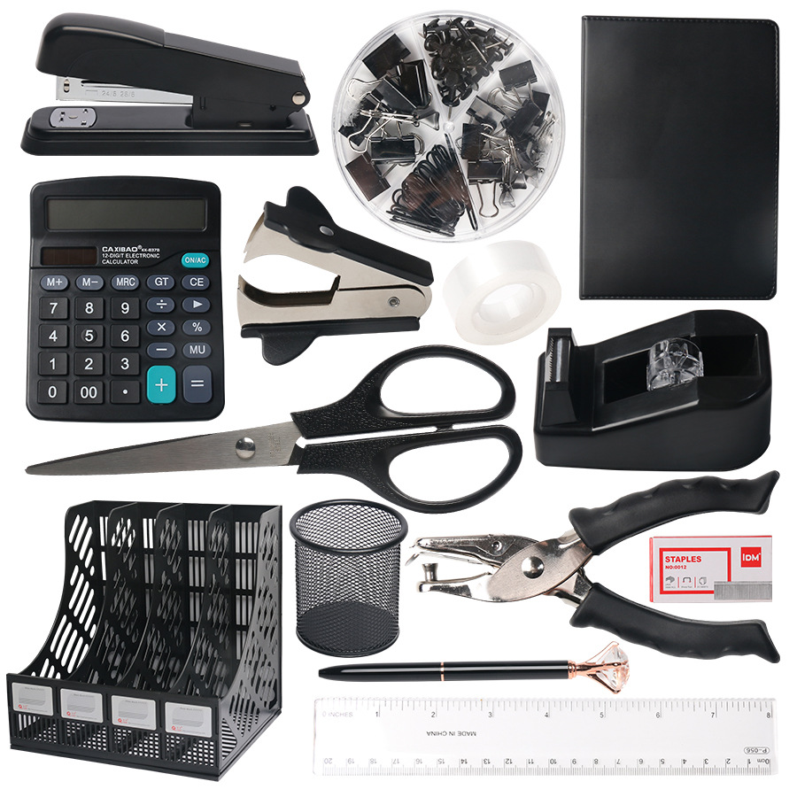 폴더 컴퓨터 테이프 홀더 조합 가위 손톱 드라이버 사무실 세트 도매 검은 스테이플러 세트스토어 가기