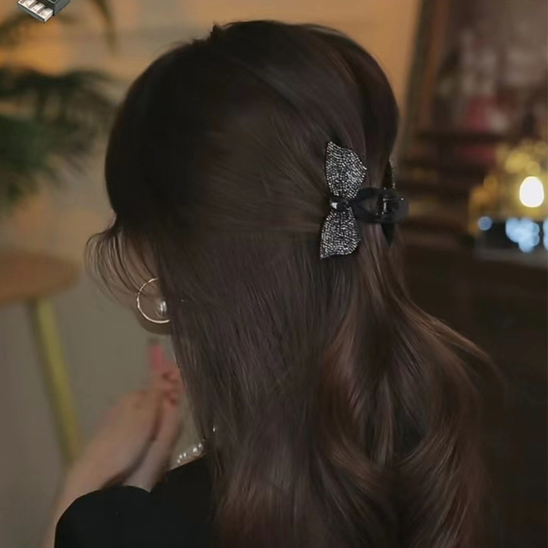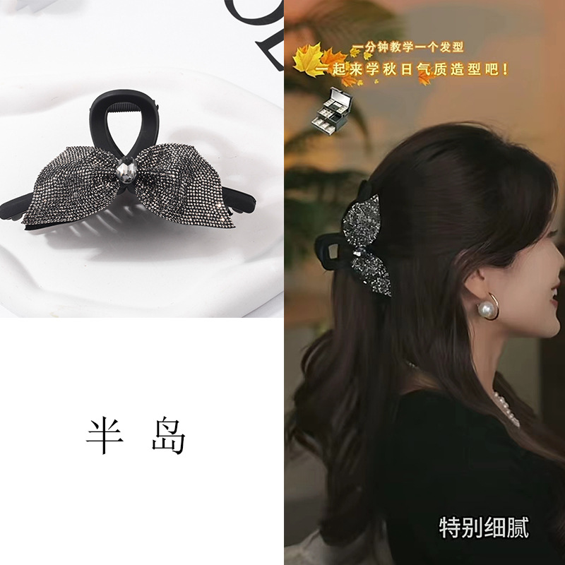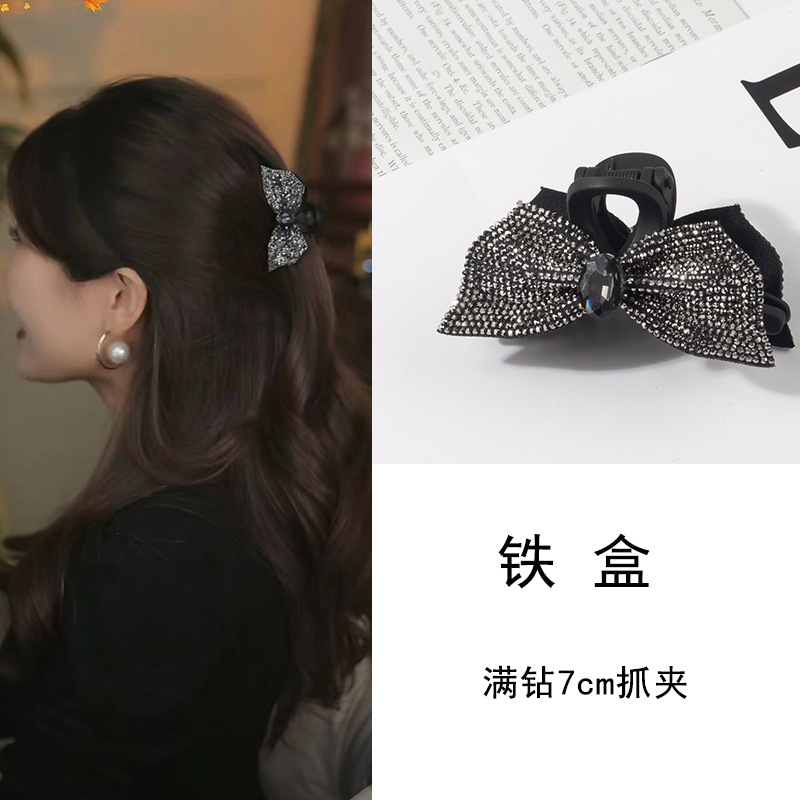 고급 보우 헤어 쥬얼리 플래그십 스토어 [아이언 박스] 머리핀 블랙 풀 다이아몬드 소형 그랩 클립 백 헤드 머리핀 여성