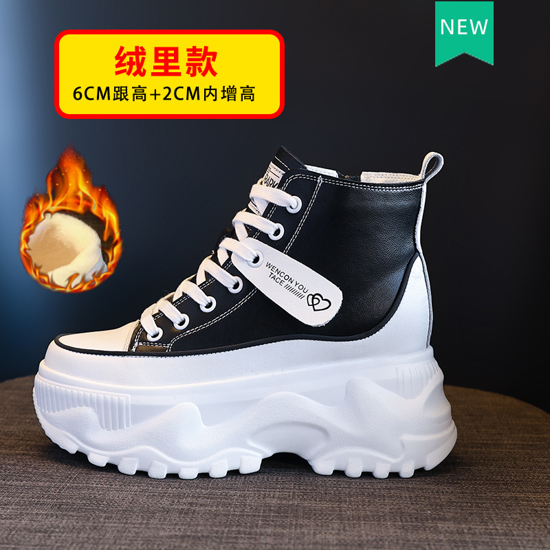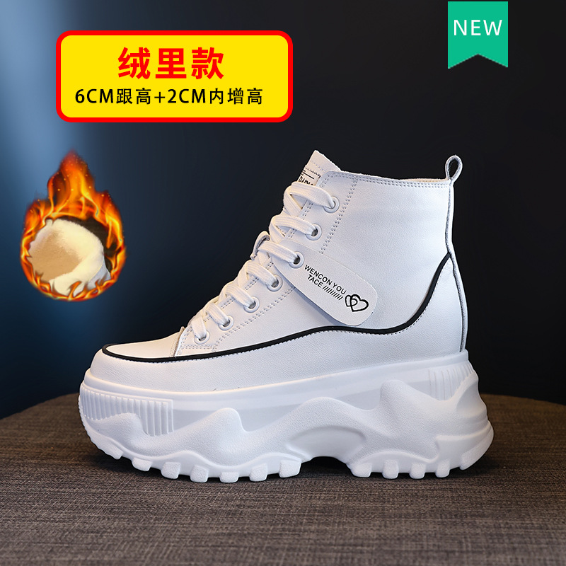 흰색 신발 여성용 하이탑 두꺼운 밑창 소가죽 조커 내부 고양 부츠 2023 봄과 가을 뉴 마틴 부츠 세대의 머리카락