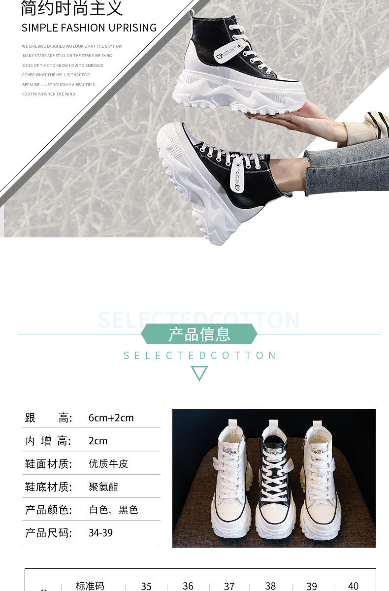 흰색 신발 여성용 하이탑 두꺼운 밑창 소가죽 조커 내부 고양 부츠 2023 봄과 가을 뉴 마틴 부츠 세대의 머리카락스토어 가기