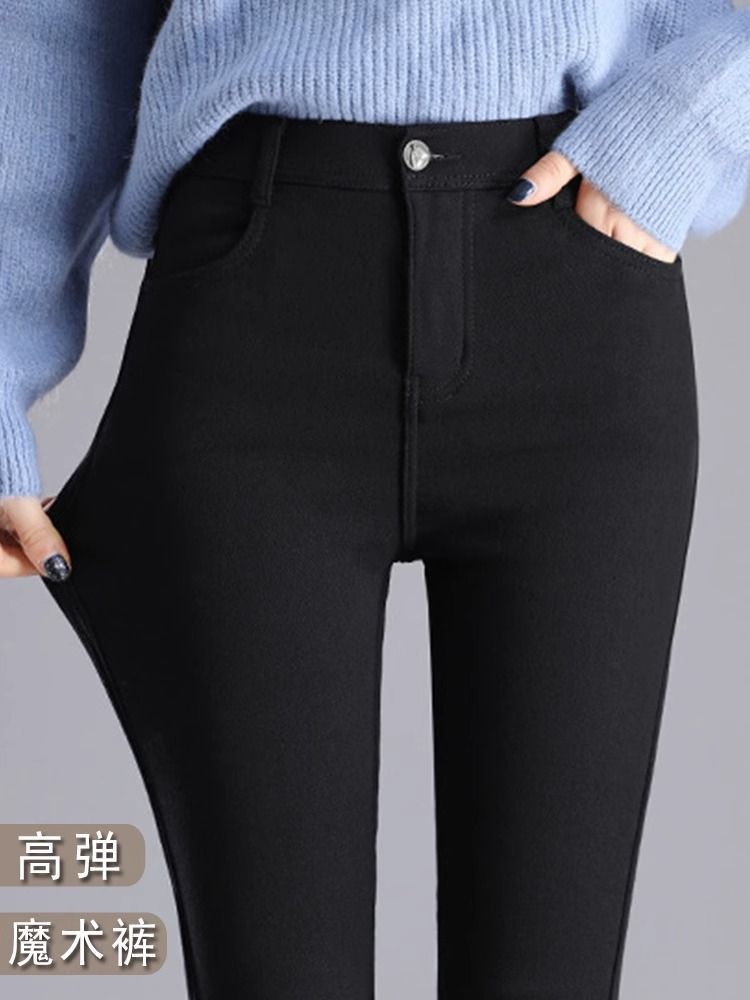 블랙 레깅스 여자의 겉옷 봄 가을 겨울 기모 2023 새로운 하이 웨이스트 타이트 펜슬 매직 레깅스 블랙 팬츠