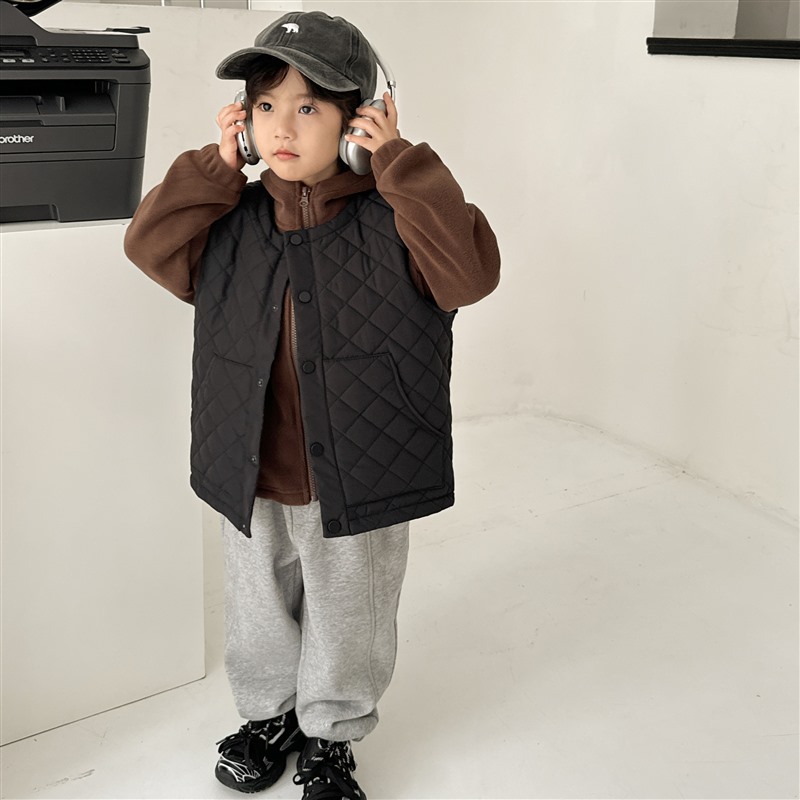 2023 하이마의 가을과 겨울 어린이 한국면 조끼 외국 스타일 가디건 남아 겨울 따뜻한 재킷