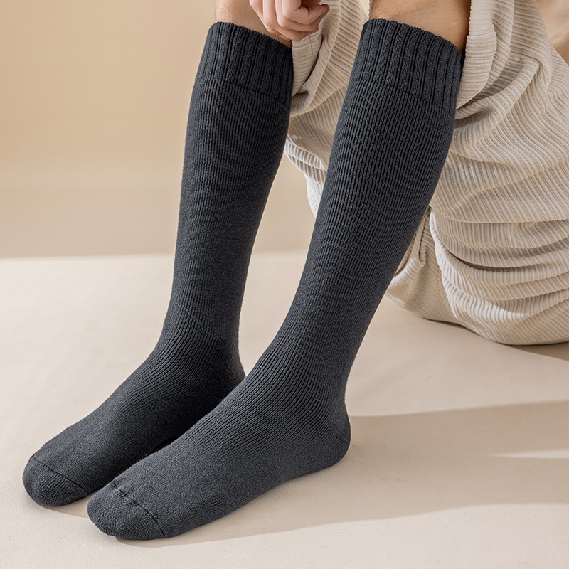 초대형 연장 브러시 양말 남성용 두꺼운 따뜻한 양말 테리 무릎 양말 무릎 높은 양말 플러스 사이즈 종아리 양말